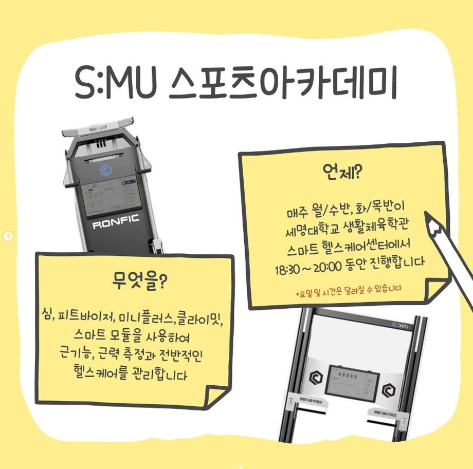 본문 시작 홈으로 커뮤니티SNS 학과소개 진로취업사례 입학안내 교육과정 커뮤니티SNS 홈페이지가이드 학과행사갤러리 학과공지 열린정보SNS 학과동아리 학과행사갤러리 학과MOU 학생회조직도 학과연혁 동문회조직도 학과행사갤러리 페이스북 트위터 프린트 S:MU 스포츠아카데미 AI 피트니스 소개 생활체육학과 2141 2025-07-31 S:MU 스포츠아카데미 AI 피트니스를 소개합니다👏🏻 AI 피트니스 장비를 통해 근력 향상뿐만 아니라 골프, 축구, 야구 등 다양한 스포츠 종목에서 접목시킬 수 있으니 관심 있는 학우분들은 참고 부탁드립니다⛳️⚽️⚾️ 더 자세한 내용이 궁금하시다면 학교 홈페이지를 방문해 주시길 바랍니다😊 목록 이전생활체육학과 제30대 학회장 선거 다음 전국 파라미타 청소년연합회 학과체험 담당부서 : 생활체육학과 담당자 : - 연락처 : 043-469-1289 최종수정일 : 2024-10-26 만족도조사 만족도 조사 이 페이지에서 제공하는 정보에 대하여 만족하시나요? 매우만족 만족 보통 불만족 매우불만족