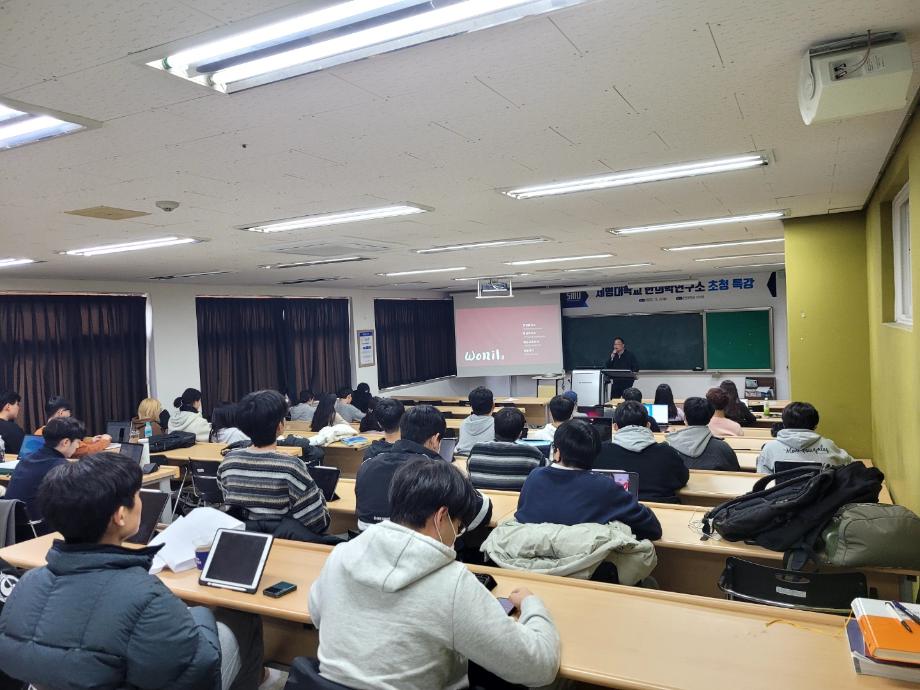 본문 시작 홈으로 대학소식 대학소개 교수소개 대학과정 커뮤니티 대학원 대학소식 홈페이지가이드 포토갤러리 학과공지 포토갤러리 발전기금 위원회 관련사이트 포토갤러리 페이스북 트위터 프린트 [한의학연구소] 초청강연회 특강 한의과대학 5316 2022-11-28 [한의학연구소] 초청강연회 특강 일 시 : 2022.11.21(월요일) 시 간 : 오후 1시 30분 ~ 오후 3시 20분 장 소 : 한의학관 105호 예1 강의실 초 청 강 사 : 한제근 대표님(원일바이오/원일홀딩스) 목록 이전세명한의 축구동아리 '활인', 제1회 전국예비의료인축구대회 3위 다음 2022학년도 연구역량 강화 세미나 담당부서 : 한의과대학 담당자 : - 연락처 : 043-649-1701 최종수정일 : 2024-10-26 만족도조사 만족도 조사 이 페이지에서 제공하는 정보에 대하여 만족하시나요? 매우만족 만족 보통 불만족 매우불만족