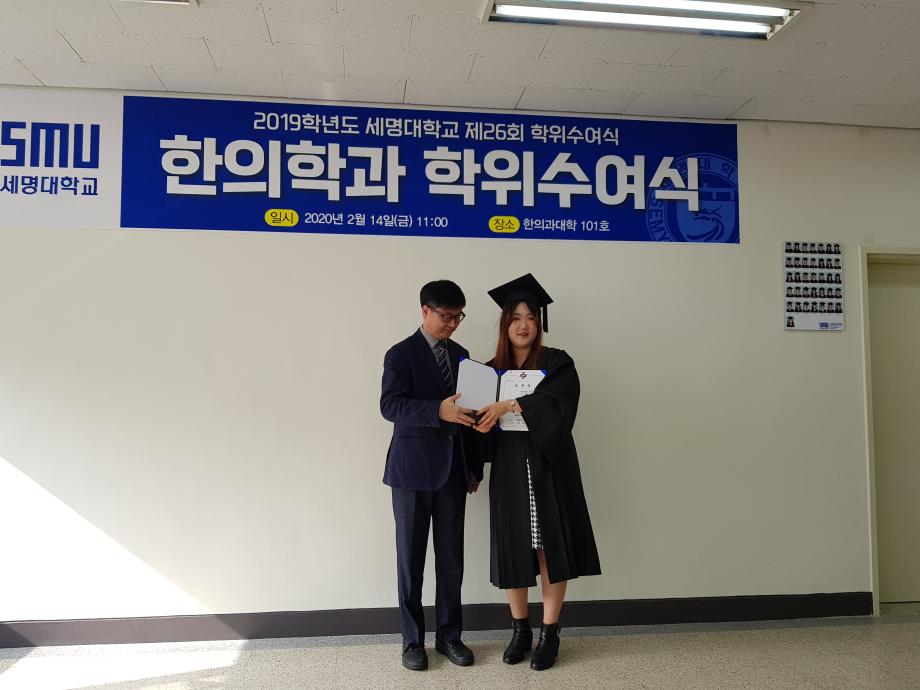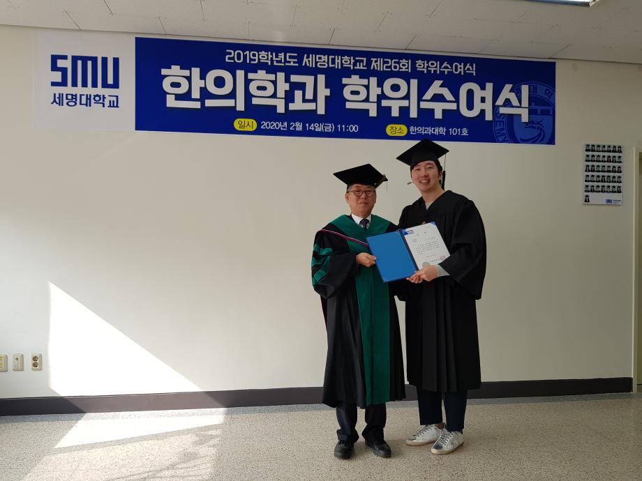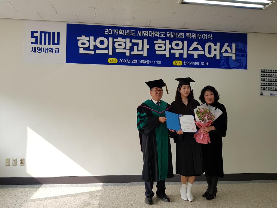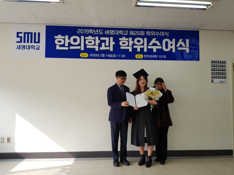본문 시작 홈으로 대학소식 대학소개 교수소개 대학과정 커뮤니티 대학원 대학소식 홈페이지가이드 포토갤러리 학과공지 포토갤러리 발전기금 위원회 관련사이트 포토갤러리 페이스북 트위터 프린트 2019학년도 한의학과 전기 학위수여식 한의과대학 12313 2020-02-18 한의학과 졸업생들 모두에게 졸업을 축하드립니다. 코로나19의 발생으로 교육부 지침에 따라 세명대학교 공식 학위수여식이 취소되어 한의과대학에서 졸업자 시상식(총장상, 한의사협회장상, 한의학회장상, 동문회장상 등)으로 조촐하게 진행하였습니다. 아울러, 졸업예정자의 학사 학위(졸업장)은 학과사무실에서 택배로 개별 송부하였음을 알려드립니다. 목록 이전2019학년도 한의학교육 교수워크샵 다음 제76회 한의사 국가고시 4년 연속 재학생 100% 합격 담당부서 : 한의과대학 담당자 : - 연락처 : 043-649-1701 최종수정일 : 2024-10-26 만족도조사 만족도 조사 이 페이지에서 제공하는 정보에 대하여 만족하시나요? 매우만족 만족 보통 불만족 매우불만족