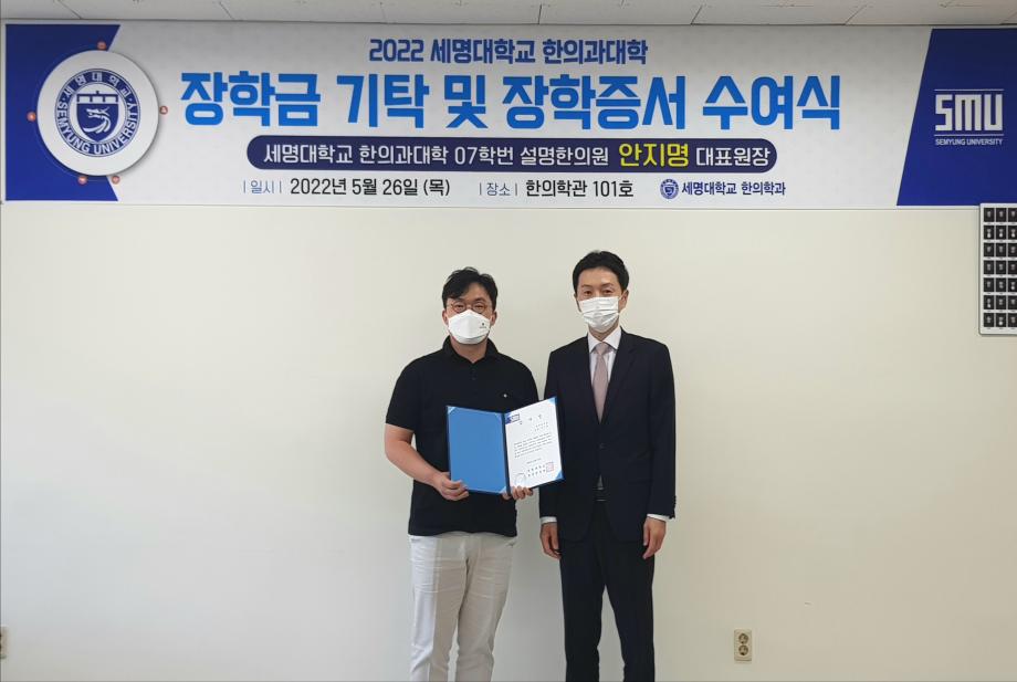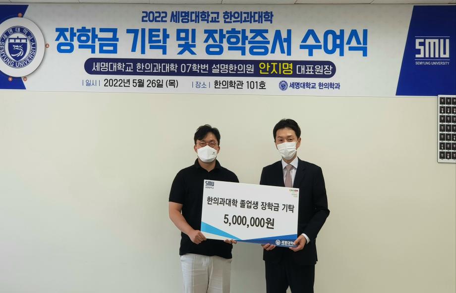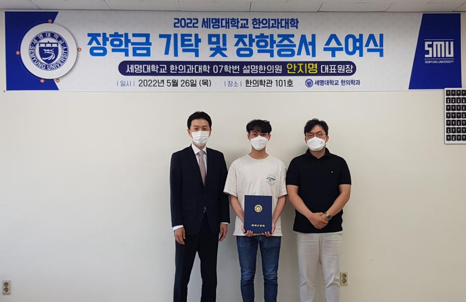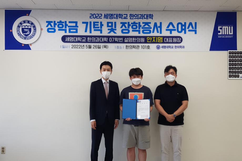 본문 시작 홈으로 대학소식 대학소개 교수소개 대학과정 커뮤니티 대학원 대학소식 홈페이지가이드 포토갤러리 학과공지 포토갤러리 발전기금 위원회 관련사이트 포토갤러리 페이스북 트위터 프린트 2022 세명대학교 한의과대학 장학금 기탁 및 장학증서 수여식(안지명 장학금 수여식) 한의과대학 3371 2022-05-26 2022 세명대학교 한의과대학 장학금 기탁 및 장학증서 수여식 (안지명 장학금 수여식) 일시 : 2022년 5월 26일 목요일 시간 : 오후 4시 30분 장소 : 한의학관 101호 한의과대학 학장실 목록 이전2022학년도 제6회 총장배 구기종목대회 - 여자피구 준결승 영상 다음 2022학년도 제6회 총장배 구기종목대회 시상식 담당부서 : 한의과대학 담당자 : - 연락처 : 043-649-1701 최종수정일 : 2024-10-26 만족도조사 만족도 조사 이 페이지에서 제공하는 정보에 대하여 만족하시나요? 매우만족 만족 보통 불만족 매우불만족