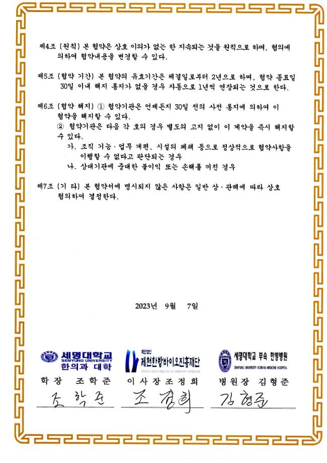 본문 시작 홈으로 대학소식 대학소개 교수소개 대학과정 커뮤니티 대학원 대학소식 홈페이지가이드 포토갤러리 학과공지 포토갤러리 발전기금 위원회 관련사이트 포토갤러리 페이스북 트위터 프린트 제천 한방바이오진흥재단 MOU 협약서 한의과대학 4360 2023-09-12 목록 이전2023 세명대학교 홍보영상 다음 2023학년도 전기 학위수여식 담당부서 : 한의과대학 담당자 : - 연락처 : 043-649-1701 최종수정일 : 2024-10-26 만족도조사 만족도 조사 이 페이지에서 제공하는 정보에 대하여 만족하시나요? 매우만족 만족 보통 불만족 매우불만족