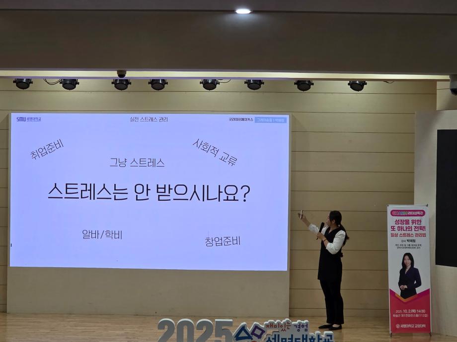 본문 시작 홈으로 커뮤니티 게시판 대학소개 교수소개 교양교육과정 교양교육 프로그램 커뮤니티 게시판 입학안내 홈페이지가이드 자료실 공지사항 자료실 학생 커뮤니티 취업정보 CHARM리더십특강 CHARM리더십특강 CHARM커뮤니케이션 제천문화탐방과 스토리텔링 CHARM인문학콘서트~2018 향토문화탐방~2018 특강 및 기타 행사 포토 갤러리 CHARM리더십특강 페이스북 트위터 프린트 2025-2학기 CHARM리더십특강 5주차 강의 교양대학 766 2025-10-02 2025-2학기 CHARM리더십특강 5주차 강의 성장을 위한 또 하나의 전략! 일상 스트레스 관리법_박혜림강사님 목록 이전2025-2학기 CHARM리더십특강 3주차 강의 다음 2025-2학기 CHARM리더십특강 9주차 강의 담당부서 : 교양대학 담당자 : - 연락처 : 043-649-7065 최종수정일 : 2024-10-26 만족도조사 만족도 조사 이 페이지에서 제공하는 정보에 대하여 만족하시나요? 매우만족 만족 보통 불만족 매우불만족