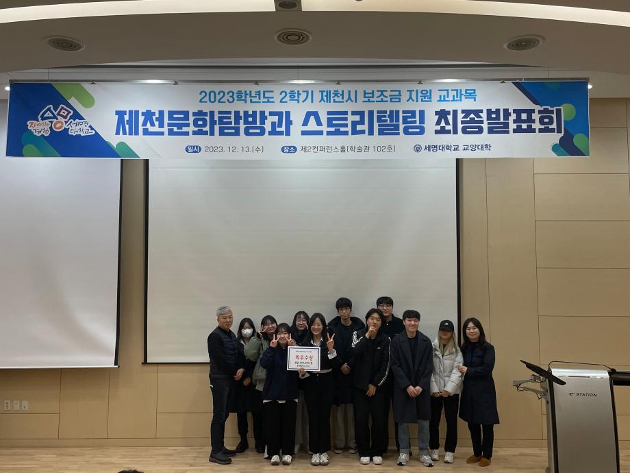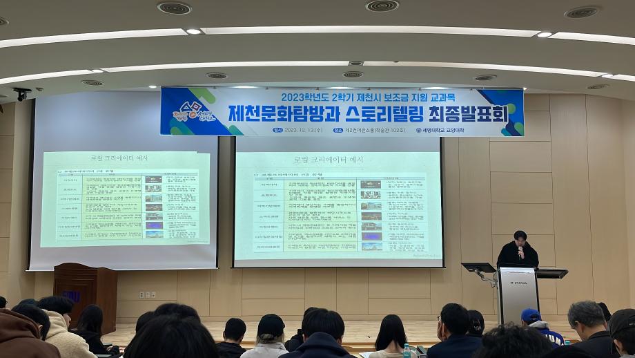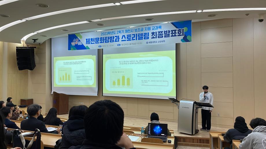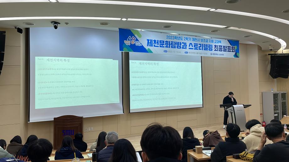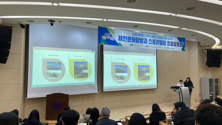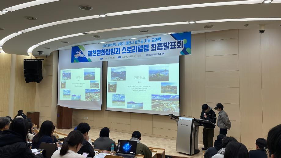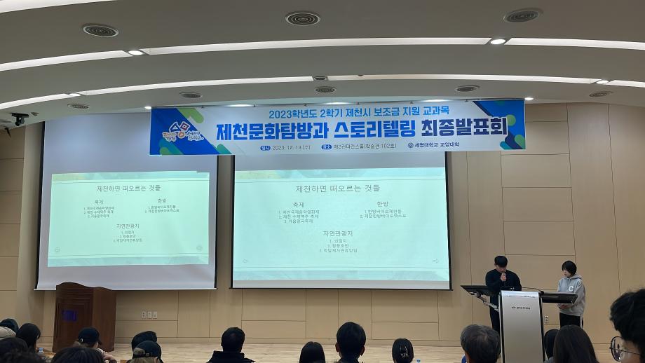 본문 시작 홈으로 커뮤니티 게시판 대학소개 교수소개 교양교육과정 교양교육 프로그램 커뮤니티 게시판 입학안내 홈페이지가이드 자료실 공지사항 자료실 학생 커뮤니티 취업정보 제천문화탐방과 스토리텔링 CHARM리더십특강 CHARM커뮤니케이션 제천문화탐방과 스토리텔링 CHARM인문학콘서트~2018 향토문화탐방~2018 특강 및 기타 행사 포토 갤러리 제천문화탐방과 스토리텔링 페이스북 트위터 프린트 2023-2학기 제천문화탐방과 스토리텔링 프레젠테이션 발표 및 수여식 교양대학 2834 2023-12-13 2023-2학기 제천문화탐방과 스토리텔링 프레젠테이션 발표 및 수여식 2023년 12월 13일(수) 13:30~15:30 / 학술관 102호 목록 이전2023-2학기 제천문화탐방과스토리텔링 4차탐방 다음 2024-1학기 제천문화탐방과스토리텔링 1주차 강의 담당부서 : 교양대학 담당자 : - 연락처 : 043-649-7065 최종수정일 : 2024-10-26 만족도조사 만족도 조사 이 페이지에서 제공하는 정보에 대하여 만족하시나요? 매우만족 만족 보통 불만족 매우불만족