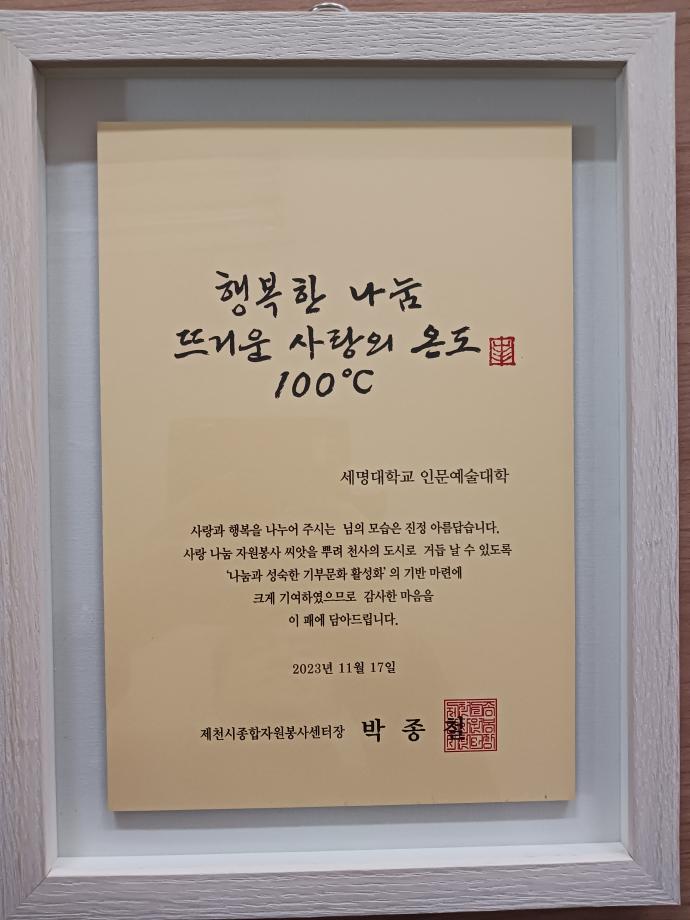본문 시작 홈으로 커뮤니티 대학소개 학과소개 입학안내 커뮤니티 홈페이지가이드 사진 자료실 대학소식 학과소식 자료실 사진 자료실 동영상 자료실 사진 자료실 페이스북 트위터 프린트 인문예술대학 제천시자원봉사센터장 감사패 수상 인문예술대학 2822 2023-11-16 인문예술대학 제천시자원봉사센터장 감사패 수상 목록 이전모듈형 교육과정 위원회 3차 회의 다음 콘텐츠스쿨 2023 창작물 쇼케이스 및 2024 비전 발표회 성황리 종료 담당부서 : 인문예술대학 담당자 : - 연락처 : 043-649-7402 최종수정일 : 2024-10-26 만족도조사 만족도 조사 이 페이지에서 제공하는 정보에 대하여 만족하시나요? 매우만족 만족 보통 불만족 매우불만족