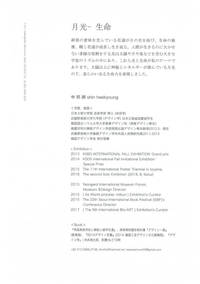 본문 시작 홈으로 커뮤니티 대학소개 학과소개 입학안내 커뮤니티 홈페이지가이드 사진 자료실 대학소식 학과소식 자료실 사진 자료실 동영상 자료실 사진 자료실 페이스북 트위터 프린트 [융합디자인학부] 시각디자인 전공 신희경 교수 일본 닛본대학 지원 갤러리에서 전시회 개최 인문예술대학 7399 2018-04-27 융합디자인학부 시각디자인 전공 신희경 교수가 일본 닛본대학에서 지원을 받아 갤러리에서 전시회를 개최하였습니다. 일시 : 2018. 04. 23 - 2018. 05. 12 시간 : 10 : 00 ~ 18 : 00 장소 : 2-42-1, Asahigaoka, Nerima-ku, Tokyo 176-8525 전화번호 : 81-(0)3-5995-8201 목록 이전[인문예술대학 주최] 4월 3일 정은성CEO 명사특강 다음 제1회 교수와 학생이 함께하는 예술무대 담당부서 : 인문예술대학 담당자 : - 연락처 : 043-649-7402 최종수정일 : 2024-10-26 만족도조사 만족도 조사 이 페이지에서 제공하는 정보에 대하여 만족하시나요? 매우만족 만족 보통 불만족 매우불만족