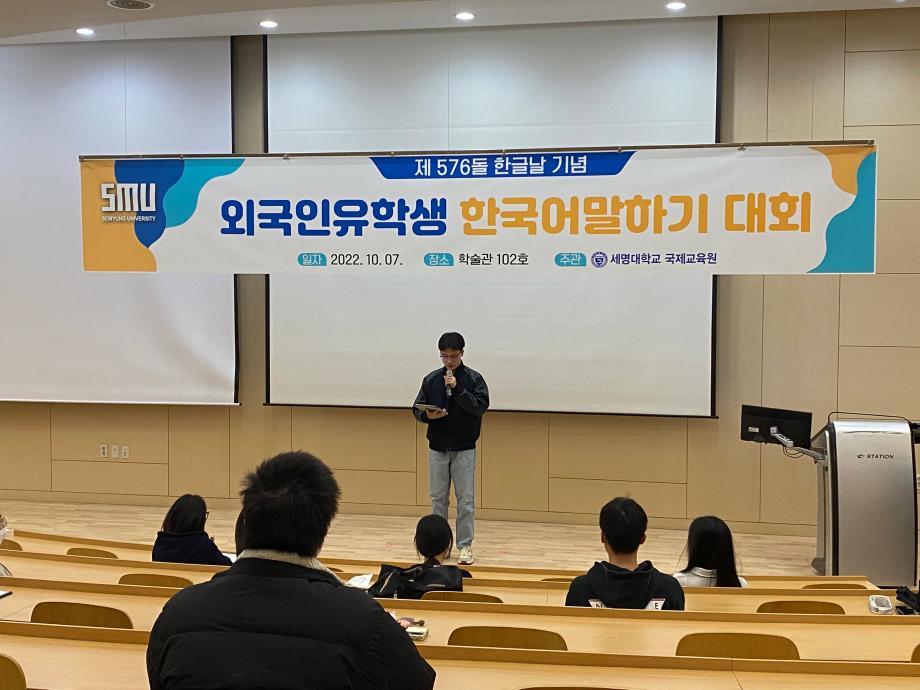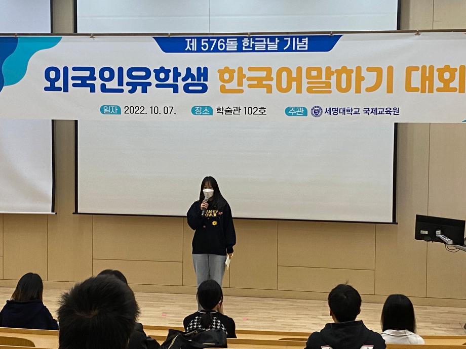 본문 시작 2022-외국인 유학생 한국어 말하기 대회 국제교육원 2362 2022-10-07 2022-외국인 유학생 한국어 말하기 대회 목록 이전2022-여름학기 종강 수료식 다음 2022-외국인 유학생 한식요리체험 담당부서 : 국제교육원 담당자 : - 연락처 : 043-649-1185 최종수정일 : 2024-10-26 만족도조사 만족도 조사 이 페이지에서 제공하는 정보에 대하여 만족하시나요? 매우만족 만족 보통 불만족 매우불만족
