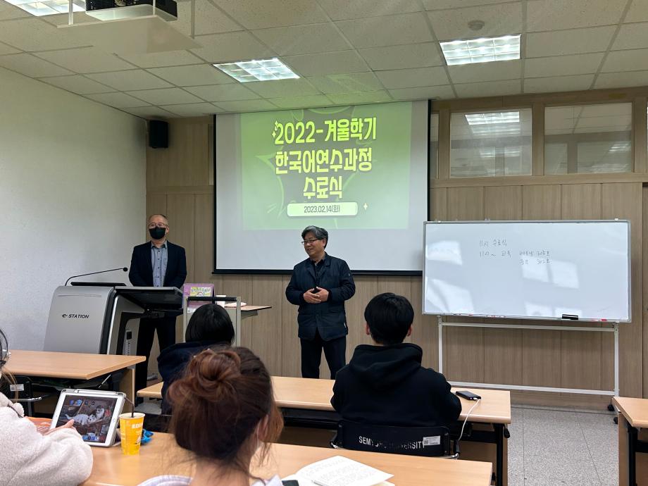 본문 시작 2022-겨울학기 종강 수료식 국제교육원 2443 2023-02-14 2022-겨울학기 종강 수료식 목록 이전2022-외국인 유학생 한식요리체험 다음 2023 외국인 유학생 체험학습 담당부서 : 국제교육원 담당자 : - 연락처 : 043-649-1185 최종수정일 : 2024-10-26 만족도조사 만족도 조사 이 페이지에서 제공하는 정보에 대하여 만족하시나요? 매우만족 만족 보통 불만족 매우불만족