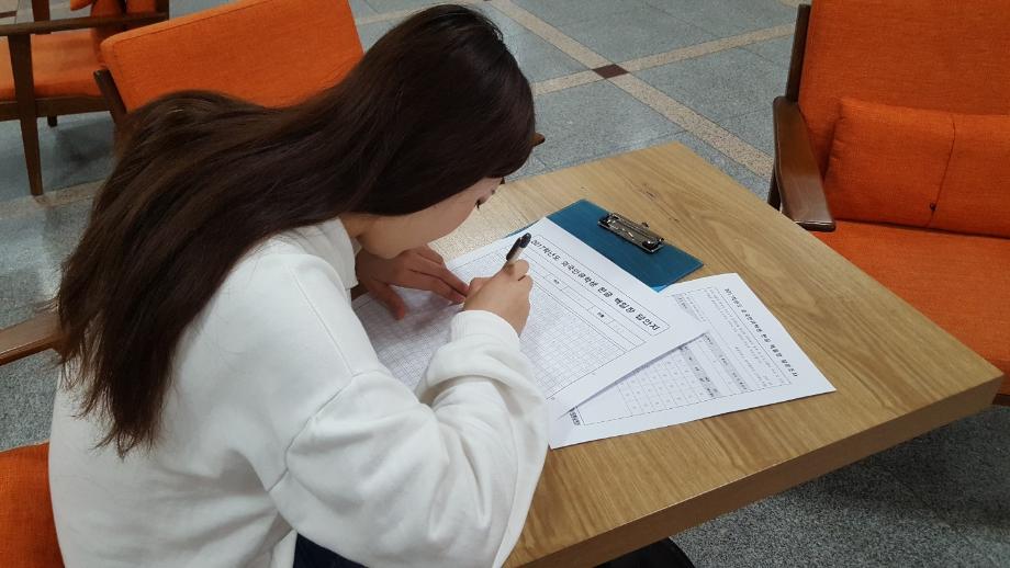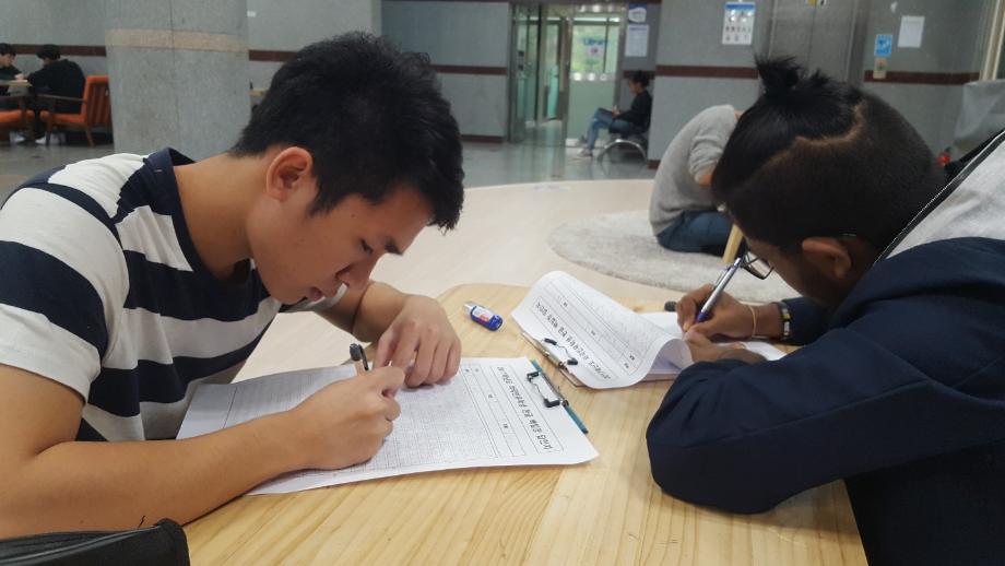 본문 시작 외국인유학생 백일장 개최 국제교육원 5484 2017-10-13 외국인 유학생들을 대상으로 백일장을 개최했습니다. 학생들은 민송도서관 내에서 자유롭게 글을 쓰며 자신의 생각을 키워나갔습니다. 국제교육원에서는 이에 따른 시상식도 진행했습니다. 목록 이전2017 외국인 유학생 채용박람회 다음 외국인 유학생 안동하회마을 문화체험 담당부서 : 국제교육원 담당자 : - 연락처 : 043-649-1185 최종수정일 : 2024-10-26 만족도조사 만족도 조사 이 페이지에서 제공하는 정보에 대하여 만족하시나요? 매우만족 만족 보통 불만족 매우불만족