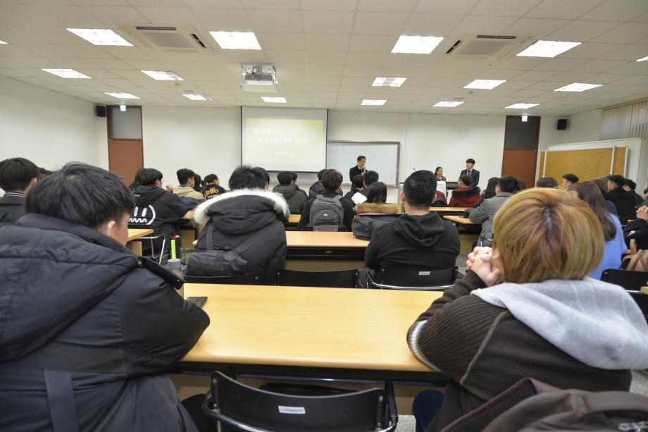 본문 시작 2018 봄학기 한국어 연수과정 개강식 국제교육원 5517 2018-03-12 03월 12일 국제교육원에서는 2018 봄학기 개강식을 진행하였습니다. 학생들의 한층 밝아진 표정을 통해서 성큼 다가온 봄기운을 느낄 수 있었습니다. 목록 이전2017년 겨울학기 한국어 연수과정 수료식 다음 2018-1 외국인 유학생 조기적응 프로그램 담당부서 : 국제교육원 담당자 : - 연락처 : 043-649-1185 최종수정일 : 2024-10-26 만족도조사 만족도 조사 이 페이지에서 제공하는 정보에 대하여 만족하시나요? 매우만족 만족 보통 불만족 매우불만족