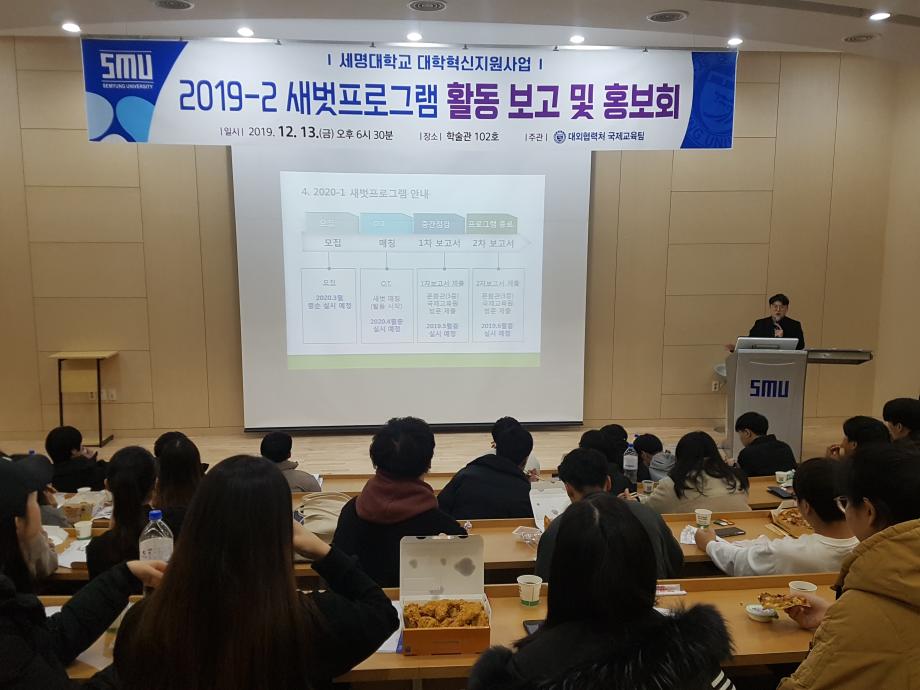 본문 시작 2019-2 새벗프로그램 성과보고회 및 홍보회 국제교육팀 5018 2019-12-13 2019-2 새벗프로그램 성과보고회 및 홍보회 목록 이전2019 겨울학기 한국어연수생 개강식 다음 2019-겨울학기 한국어 연수생 간담회 담당부서 : 국제교육원 담당자 : - 연락처 : 043-649-1185 최종수정일 : 2024-10-26 만족도조사 만족도 조사 이 페이지에서 제공하는 정보에 대하여 만족하시나요? 매우만족 만족 보통 불만족 매우불만족