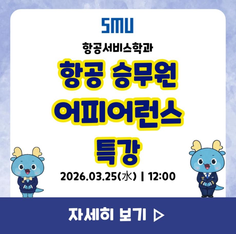 본문 시작 홈으로 커뮤니티 학과소개 입학정보 교과과정 커뮤니티 홈페이지가이드 포토갤러리 SNS 소통 공간 포토갤러리 공지사항 동아리 포토갤러리 페이스북 트위터 프린트 어피어런스 특강 항공서비스학과 34 2026-04-09 안녕하십니까 세명대학교 항공서비스학과 온라인 홍보국 💙푸르미르💙입니다. 오늘은 1학년 대상으로 어피어런스 특강을 진행했습니다! 대학 생활과 전공에 대한 이해를 높일 수 있는 유익한 시간이 되었기를 바라며, 앞으로의 학교생활에도 도움이 되기를 바랍니다 😊 소중한 꿈을 품고 누구보다 높게 오를 여러분들을 저희 ‘푸르미르‘가 항상 응원하겠습니다✈️ 궁금한 사항이 있으시다면 언제든 SNS로 연락주십시오💬 #세명대학교 #항공서비스학과 #항공과 #승무원 목록 이전4월 다이어리