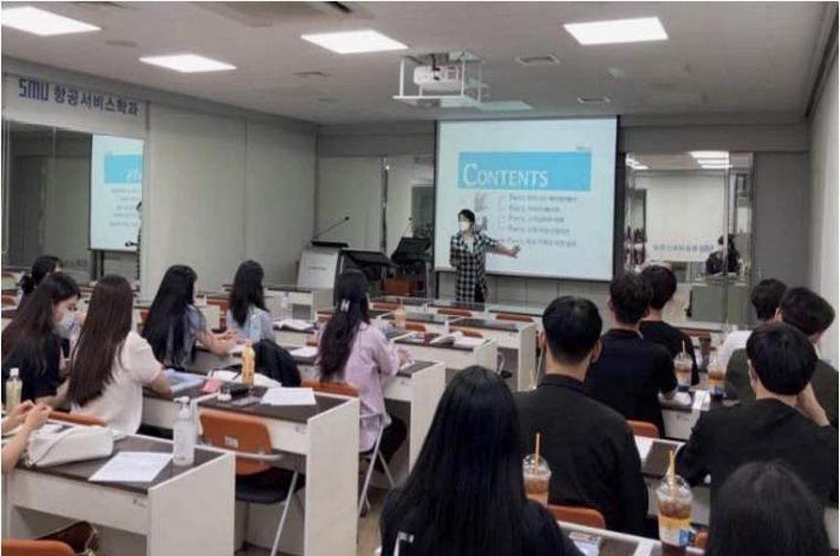 서비스인으로서 갖춰야하는 기본적인 비즈니스 매너와 에티켓, 이미지 메이킹, 고객심리의 이해와 고객 커뮤니케이션, 회의 기획 및 의전 실무에 대한 개념과 중요성에 대해 배우며, 일상생활에서 미처 발견하지 못하였던 서비스의 세세한 부분에 대해 알아가고 배울 수 있는 의미 있는 시간을 가졌다.