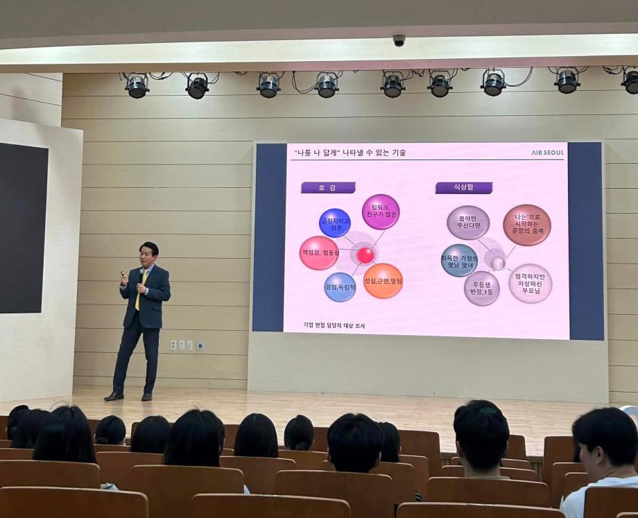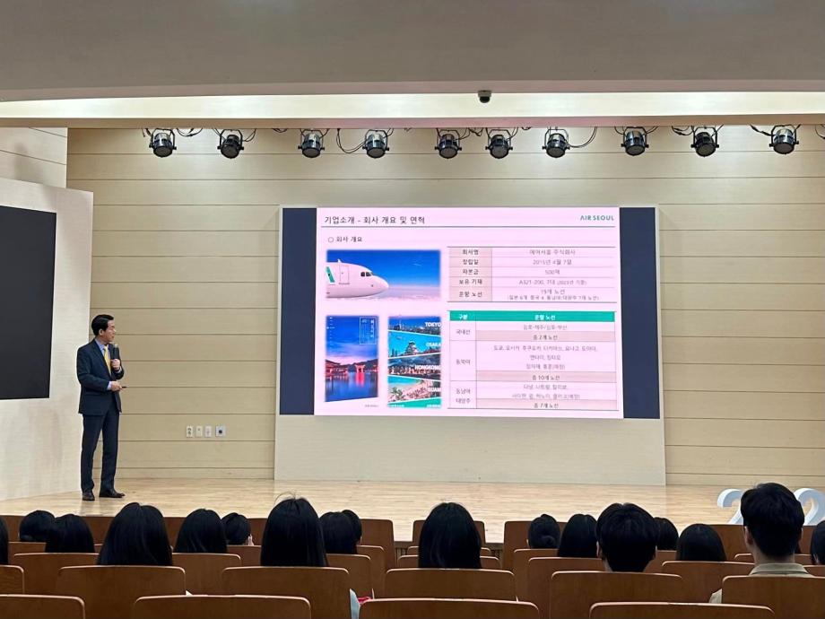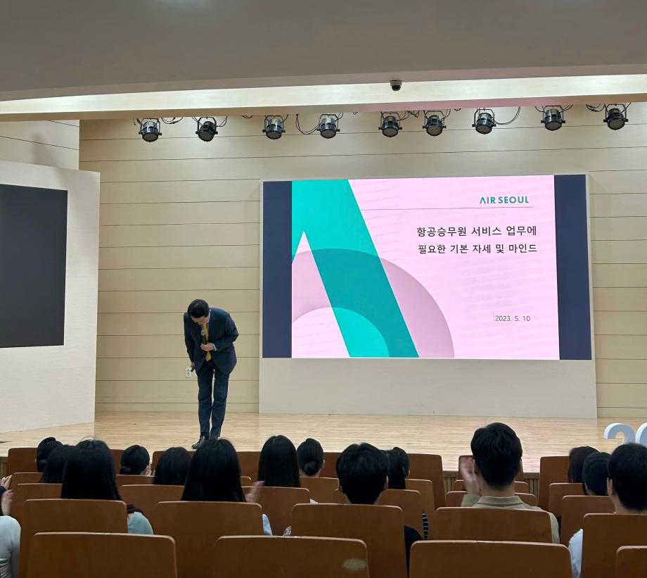지난 5월 10일, 세명대학교 항공서비스학과에서 에어서울 캐빈승무원 팀장님의 특강이 진행되었습니다 💚