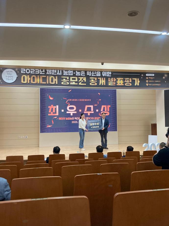 지난 5월 17일 제 1회 제천시 농촌협약지원센터에서 개최한 제천시 농업•농촌 혁신 아이디어 공모전에서 세명대학교 항공서비스학과 재학생들이 1,2,3위를 모두 수상하는 영광을 차지했습니다