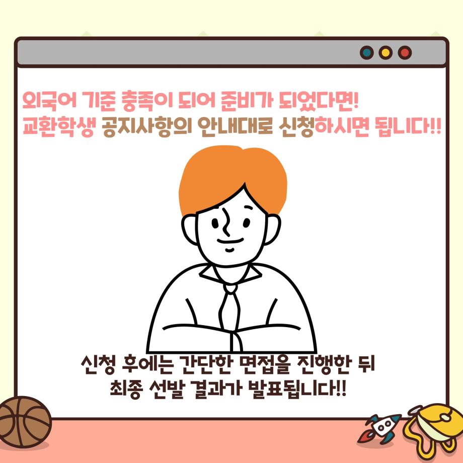 오늘은 교환학생 가는 법에 관한 소개를 카드 뉴스로 제작해 보았습니다