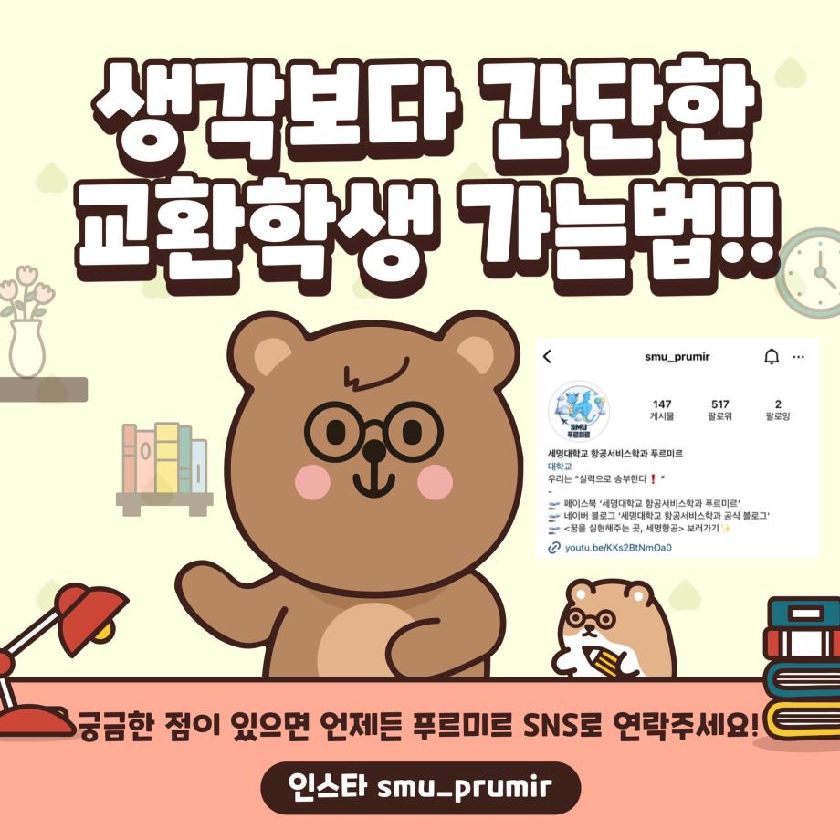 교환학생에 관심이 많으신 분들이라면 저희 세명대학교 항공서비스학과에서 꿈을 이루시길 바랍니다 👏💙