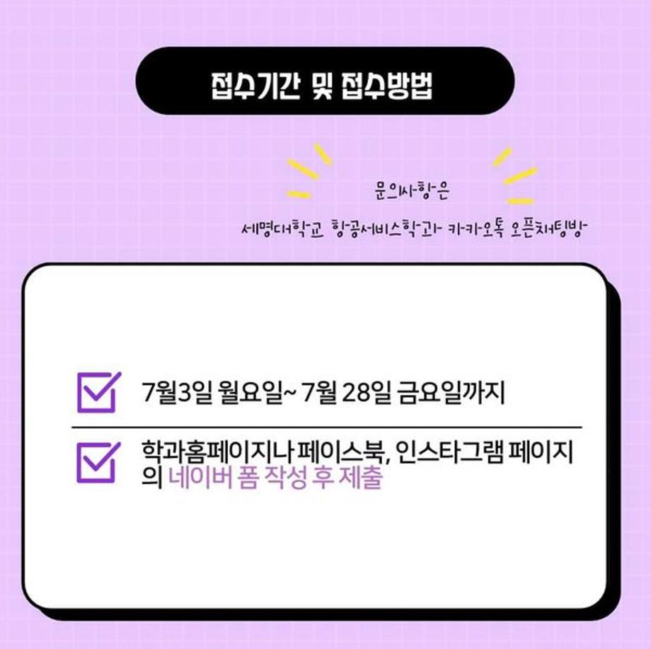 🔍 페이스북 : 검색창에 "세명대학교 항공서비스학과 푸르미르" 검색