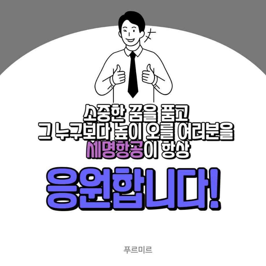 소중한 꿈을 품고 그 누구보다 높이 오를 여러분을 저희 “푸르미르”가 항상 응원하겠습니다 ✈️💙