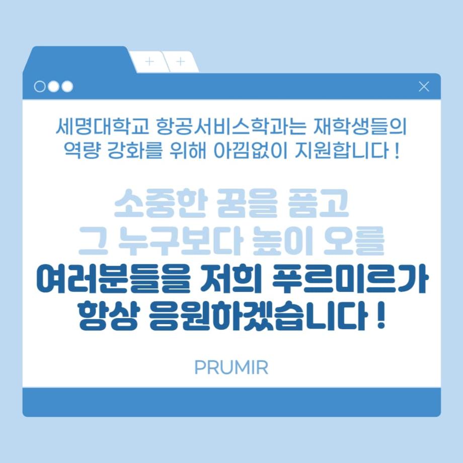 안녕하십니까 세명대학교 항공서비스학과 온라인 홍보국 💙푸르미르💙입니다