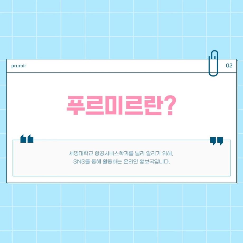 안녕하십니까 세명대학교 항공서비스학과 온라인 홍보국 💙푸르미르 💙입니다.