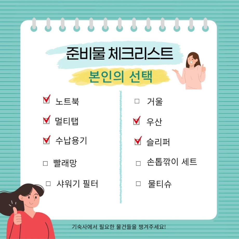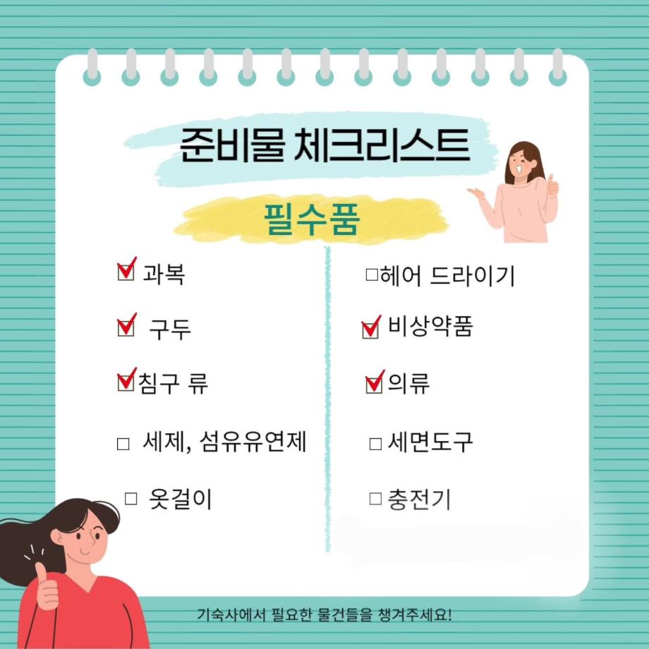 오늘은 기숙사에 입사할때 필요한 물품들을 정리한 게시물을 들고 와보았습니다!!