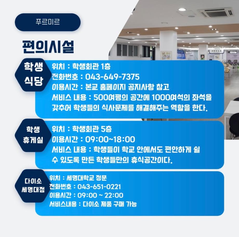 오늘은 세명대학교의 다양한 편의시설에 관하여 소개해드리고자 합니다