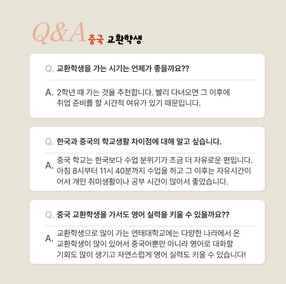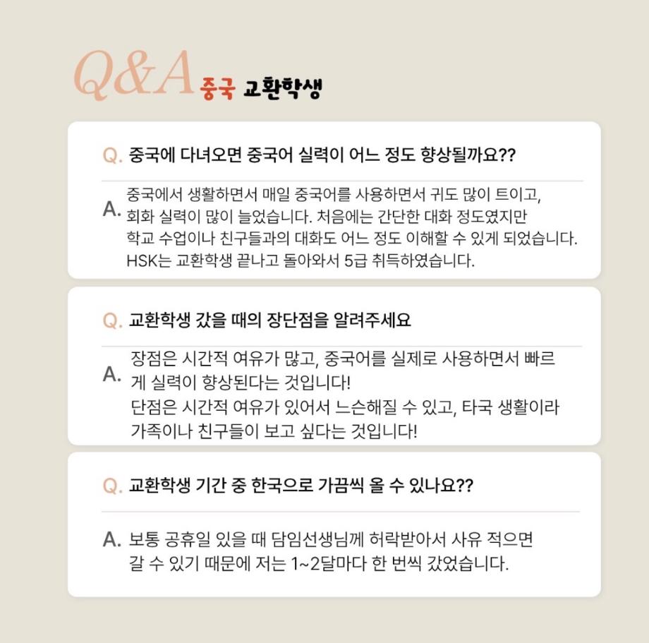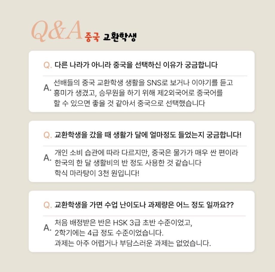 이번 게시물에서는 중국 교환학생을 다녀온 선배님들의 생생한 경험을 바탕으로,