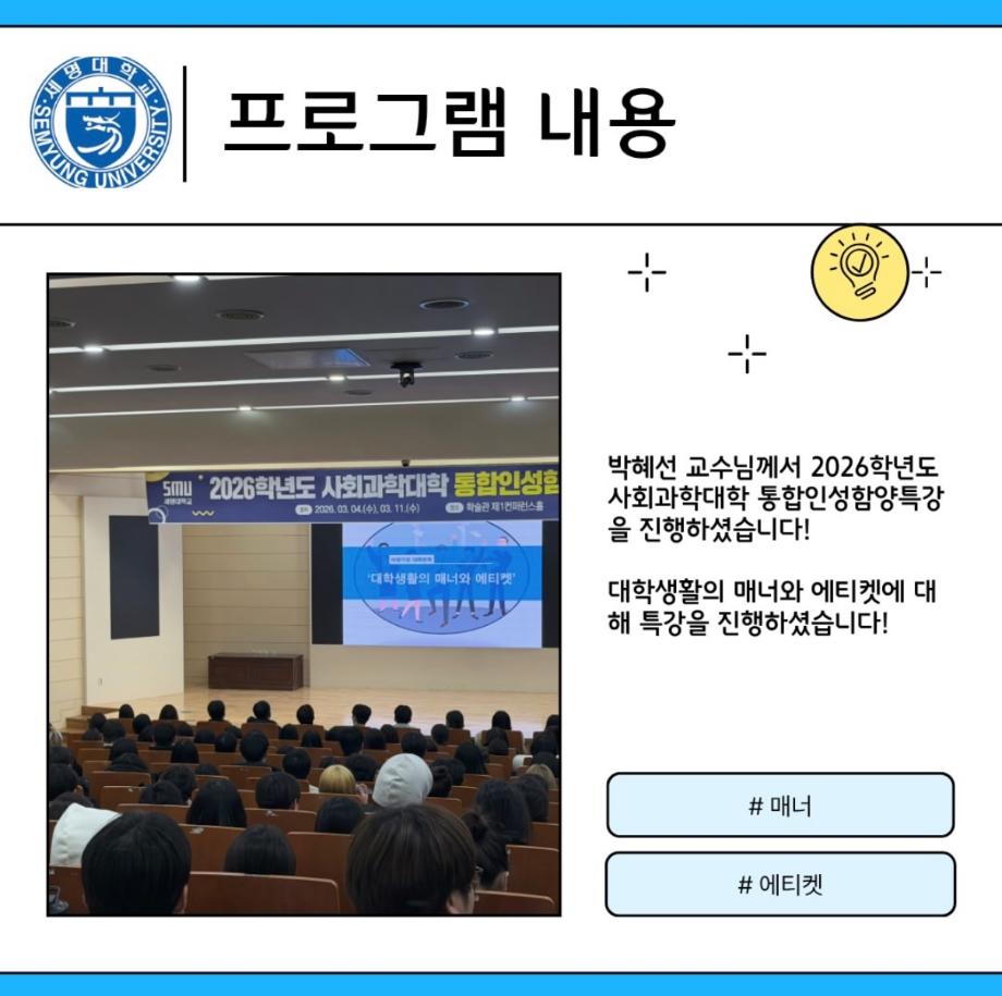 2026학년도 사회과학대학 통합인성 함양 특강