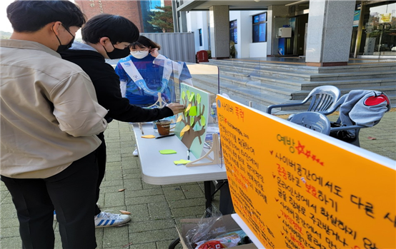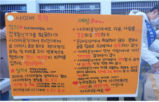 본문 시작 2020학년도 사이버폭력 예방 캠페인 CHARM케어상담센터 4470 2020-10-28 사회복지학과 학생들과 함께 목록 이전2020 상호 교류 협력을 위한 협약식 다음 2020학년도 불법카메라 10월 정기 점검 담당부서 : CHARM케어상담센터 담당자 : - 연락처 : 043-649-1789 최종수정일 : 2024-10-26 만족도조사 만족도 조사 이 페이지에서 제공하는 정보에 대하여 만족하시나요? 매우만족 만족 보통 불만족 매우불만족
