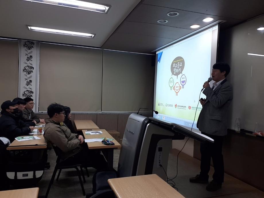 본문 시작 2019학년도 건강상담의 날 특강 "보고·듣고·말하기 교육" CHARM케어센터 4235 2019-04-10 2019학년도 1학기 건강상담의 날 특강 "보고·듣고·말하기 교육" 대상 : 사회복지학과 학생들 일시 : 2019년 4월 10일(수) 10:00~12:30 장소 : 사회과학관 113호 강사 : 제천시 정신건강복지센터 이용복 사회복지사 목록 이전[2019학년도 4월 건강상담의 날 특강 "보고·듣고·말하기 교육" ] 다음 2019학년도 5월 건강상담의 날 특강 "보고·듣고·말하기 교육" 담당부서 : CHARM케어상담센터 담당자 : - 연락처 : 043-649-1789 최종수정일 : 2024-10-26 만족도조사 만족도 조사 이 페이지에서 제공하는 정보에 대하여 만족하시나요? 매우만족 만족 보통 불만족 매우불만족