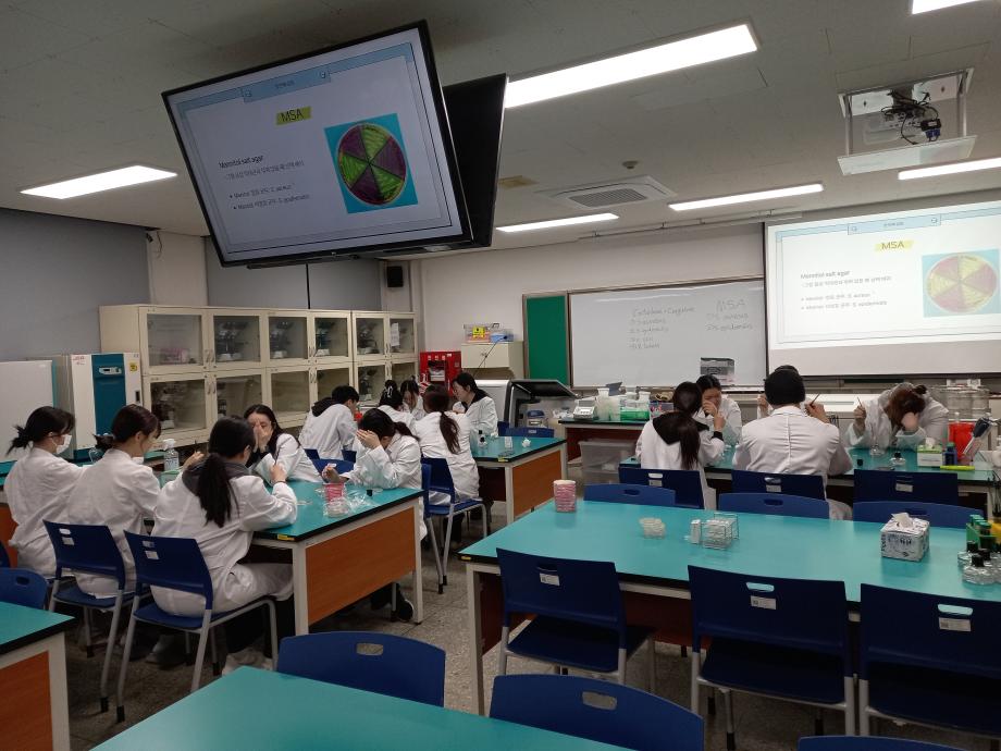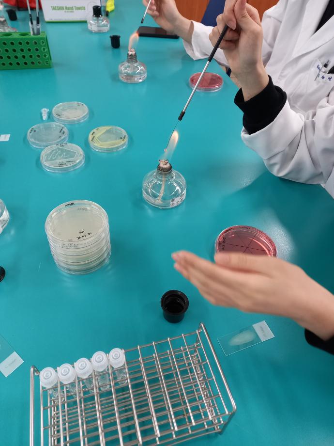 본문 시작 MSA streaking, Catalese test, Coagulase test 실험 임상병리학과 36 2026-04-08 MSA를 이용한 Mannitol 발효 균주와 비균주를 구분하는 실험, Catalese test를 통해 과산화수소와 반응하여 거품이 생성되는 균주를 보는 실험, Coagulase test를 통해 혈장응고효소와 반응하여 응고되는 반응을 보이는 균주를 확인하는 실험을 했습니다. 목록 이전세균맨 회식 담당부서 : 임상병리학과 담당자 : - 연락처 : 043-649-1537 최종수정일 : 2024-10-26 만족도조사 만족도 조사 이 페이지에서 제공하는 정보에 대하여 만족하시나요? 매우만족 만족 보통 불만족 매우불만족