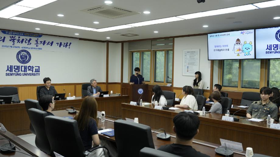 본문 시작 Photo SMU 세명소개 입학/취업 대학/대학원 학사지원 대학생활 연구/산학 기관/시설 SMU Story 소통·공감 학교기업 홈페이지가이드 학생활동 News@SMU 공지사항 보도자료 Photo SMU Media SMU 민송백일장 해카톤 경진대회 학생활동 페이스북 트위터 프린트 밀어주는 위원회 제4회 무소출정식 홍보센터 2844 2025-07-29 밀어주는 위원회 꿈 실현 장학금 수여 제4회 무소출정식 목록 이전2025 자기설계 해외배낭연수 발대식 다음 2025 제10기 세명대학교 하계 해외봉사단 발대식 담당부서 : 홍보센터 담당자 : 홍보센터 연락처 : 043-649-1175 최종수정일 : 2024-10-26 만족도조사 만족도 조사 이 페이지에서 제공하는 정보에 대하여 만족하시나요? 매우만족 만족 보통 불만족 매우불만족