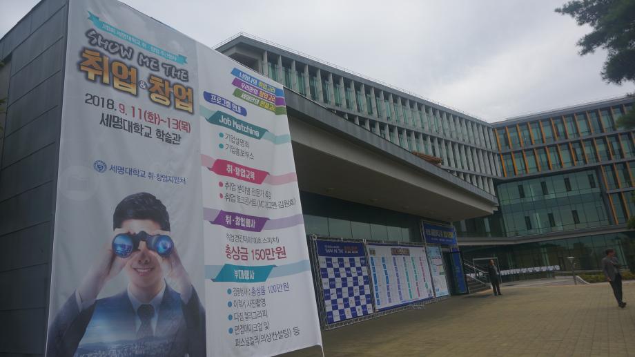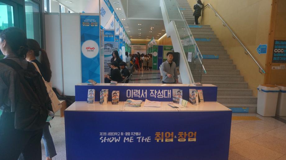 본문 시작 Photo SMU 세명소개 입학/취업 대학/대학원 학사지원 대학생활 연구/산학 기관/시설 SMU Story 소통·공감 학교기업 홈페이지가이드 학생활동 News@SMU 공지사항 보도자료 Photo SMU Media SMU 민송백일장 해카톤 경진대회 학생활동 페이스북 트위터 프린트 제3회 세명대학교 취창업주간행사 기획실 7073 2018-09-13 제3회 세명대학교 취창업주간행사 세명대학교 재학생의 취업과 창업 역량강화를 위한 행사이다. 취업과 창업을 위한 특강 및 설명회가 현장에서 진행되며 실제 기업 인사 담당자가 참가하는 채용부스도 운영한다. 그 외에도 면접 메이크업, 이력서 사진촬영, 인적성 검사 등 다채로운 부대행사도 지원한다. 목록 이전제28회 청룡축전 다음 중국어 시 낭송 대회 담당부서 : 홍보센터 담당자 : 홍보센터 연락처 : 043-649-1175 최종수정일 : 2024-10-26 만족도조사 만족도 조사 이 페이지에서 제공하는 정보에 대하여 만족하시나요? 매우만족 만족 보통 불만족 매우불만족
