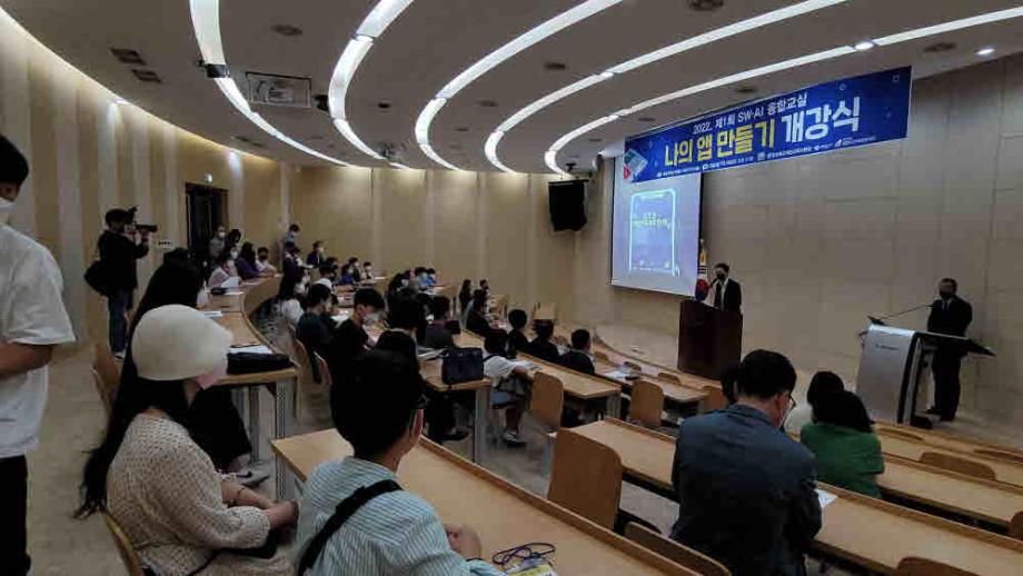 세명대학교 IT엔지니어링대학은 제천시인재육성재단(이사장 지중현)은 2022. 7. 9. 세명대학교 학술관에서 ‘2022년 제1회 SW․AI 융합교실(나의 앱 만들기)’ 개강식을 개최했다.