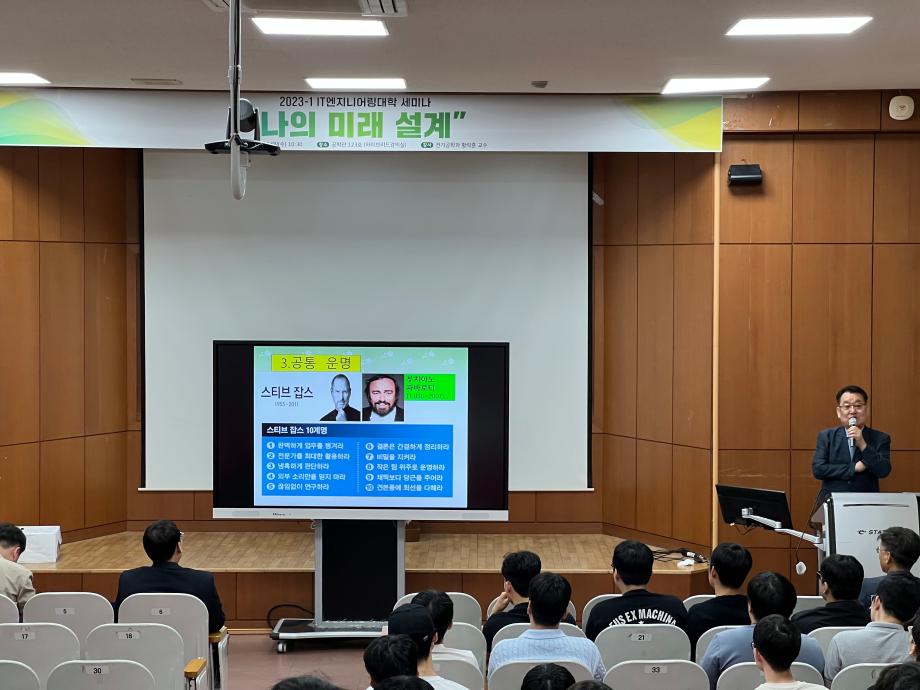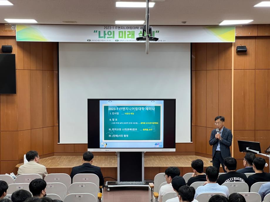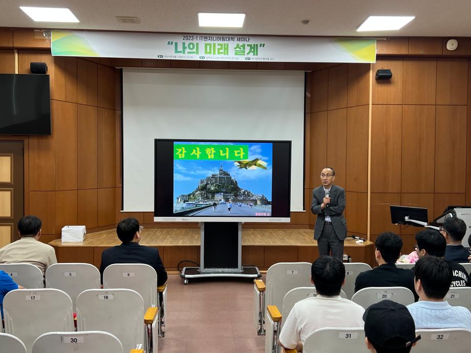 본문 시작 홈으로 커뮤니티 대학소개 학과소개 입학안내 커뮤니티 홈페이지가이드 포토갤러리 대학소식 학과소식 자료실 포토갤러리 포토갤러리 페이스북 트위터 프린트 2023-1학기 학생과 함께하는 세미나 개최 IT엔지니어링대학 2638 2023-06-15 IT엔지니어링대학에서는 재학생들의 학습역량 강화 및 대학 생활 만족도 제고를 위하여 '학생과 함께하는 세미나'를 2023년 6월 14일(수) 공학관 123호에서 개최하였다. 이번 세미나는 '나의 미래 설계 (성공하는 삶을 위하여)' 주제로 황락훈(전기공학과) 교수님이 발표를 하였으며, 학생들에게 경험담과 앞으로의 미래 사회에서 공과대학 학생으로서의 비전을 알 수 있는 좋은 시간이 되 목록 이전제1회 청소년 창의융합(AI-STEAM)행사 참여 다음 2023-1학기 학생과 함께하는 세미나 개최 담당부서 : AI융합대학 담당자 : - 연락처 : 043-649-7422 최종수정일 : 2024-10-26 만족도조사 만족도 조사 이 페이지에서 제공하는 정보에 대하여 만족하시나요? 매우만족 만족 보통 불만족 매우불만족