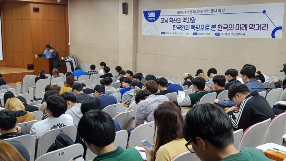 본문 시작 홈으로 커뮤니티 대학소개 학과소개 입학안내 커뮤니티 홈페이지가이드 포토갤러리 대학소식 학과소식 자료실 포토갤러리 포토갤러리 페이스북 트위터 프린트 2018-1학기 IT엔지니어링대학 명사초청특강 IT엔지니어링대학 6338 2018-05-17 2018학년도 1학기 IT엔지니어링대학 명사초청특강을 5우러 16일 공학관 123호에서 실시하였다. 특강 강사인 류제춘전무는 코닝정밀소재 신사업추진실장으로, 이번 특강의 주제는 <코닝혁신의 역사와 한국인의 특징으로 본 한국의 미래 먹거리> 로 미래인재상은 변화에 능동적이고, 적극적으로 대응하는 사람이라고 언급. 참여학생에는 위세광명 포인트 2점을 부여하였다. 목록 이전IT엔지니어링대학 2018-1차 학부(과)조교회의 다음 2018학년도 대학일자리센터 지원 IT엔지니어링대학 임직원 취업특강 1차실시 담당부서 : AI융합대학 담당자 : - 연락처 : 043-649-7422 최종수정일 : 2024-10-26 만족도조사 만족도 조사 이 페이지에서 제공하는 정보에 대하여 만족하시나요? 매우만족 만족 보통 불만족 매우불만족