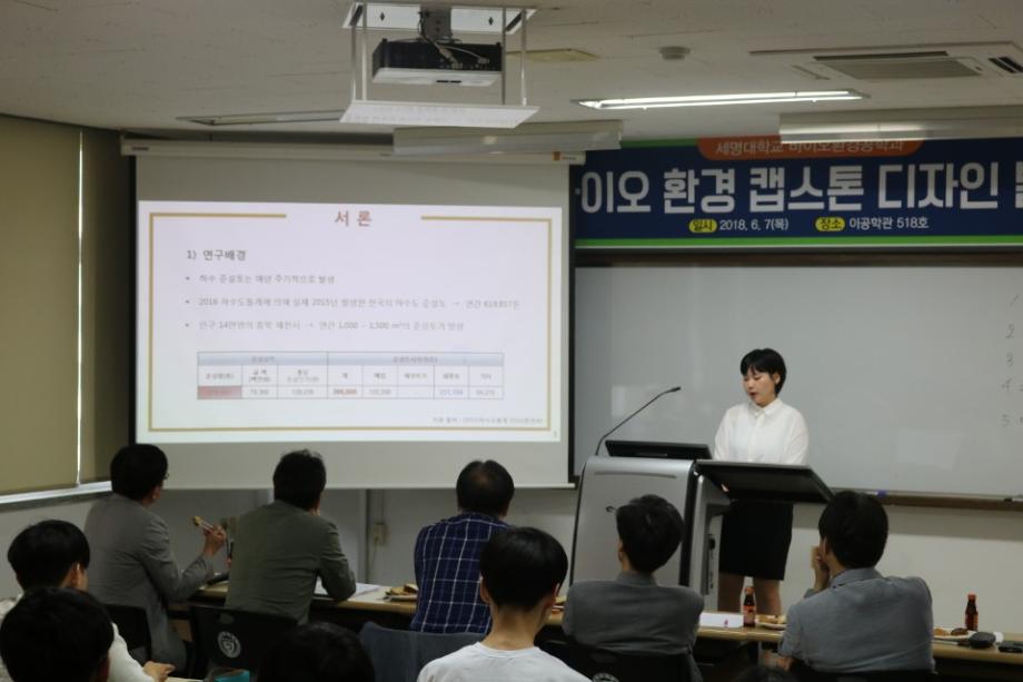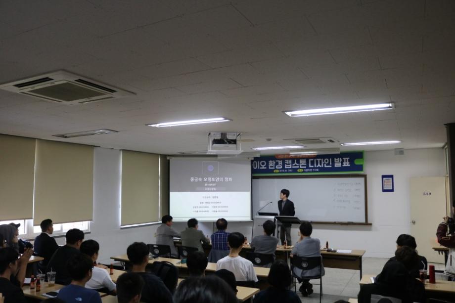 본문 시작 홈으로 커뮤니티 대학소개 학과소개 입학안내 커뮤니티 홈페이지가이드 포토갤러리 대학소식 학과소식 자료실 포토갤러리 포토갤러리 페이스북 트위터 프린트 2018학년도 바이오 환경 캡스톤 디자인 발표회 실시 IT엔지니어링대학 6550 2018-06-07 2018년 6월 7일(목) 11시 30분 부터 13시 30분까지 이공학관 518호에서 바이오 환경 캡스톤 디자인 발표를 진행 하였다. 바이오환경공학과 4학년 학생들은 2018학년도 1학기 동안 5개조(4학년)26명이 연구에 참여했으며, 1학기 동안 쉽지 않은 주제로 연구를 하느라 고생하였다. 발표회에는 재학생 80여명이 참석하여 선배들의 연구내용을 들었다. 이번 연구는 졸업논문을 대체한 것이다. 목록 이전2018학년도 대학일자리센터 지원 IT엔지니어링대학 임직원 취업특강 1차실시 다음 2018 전자공학과 캡스톤디자인 졸업작품 발표회 실시 담당부서 : AI융합대학 담당자 : - 연락처 : 043-649-7422 최종수정일 : 2024-10-26 만족도조사 만족도 조사 이 페이지에서 제공하는 정보에 대하여 만족하시나요? 매우만족 만족 보통 불만족 매우불만족
