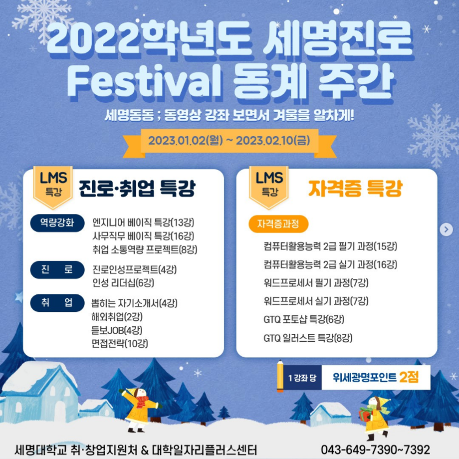 본문 시작 홈으로 커뮤니티 학과소개 진로 및 취업 학과과정 커뮤니티 SNS 홈페이지가이드 학과 소식 및 행사 학과공지 학과 소식 및 행사 대학생활 엿보기 어쩌다 출근 챌린지 학생회 동아리 통학버스 시간표 학과 소식 및 행사 페이스북 트위터 프린트 세명 진로 Festival ~ 동영상 강좌 보면서 겨울을 알차게~! 작업치료학과 5963 2023-01-05 목록 이전CHARM 따뜻한 '별빛 나무 ' 다음 2023 년 학과 전체 엠티!! 담당부서 : 작업치료학과 담당자 : - 연락처 : 043-649-1632 최종수정일 : 2024-10-26 만족도조사 만족도 조사 이 페이지에서 제공하는 정보에 대하여 만족하시나요? 매우만족 만족 보통 불만족 매우불만족