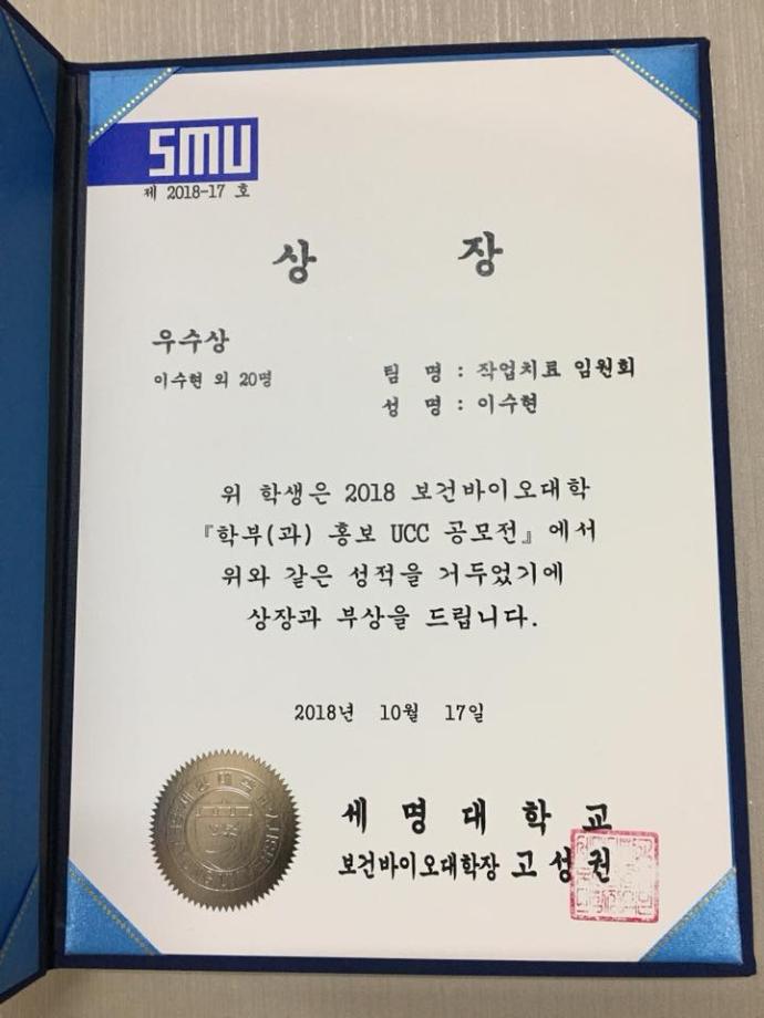 본문 시작 홈으로 커뮤니티 학과소개 진로 및 취업 학과과정 커뮤니티 SNS 홈페이지가이드 학과 소식 및 행사 학과공지 학과 소식 및 행사 대학생활 엿보기 어쩌다 출근 챌린지 학생회 동아리 통학버스 시간표 학과 소식 및 행사 페이스북 트위터 프린트 작업치료학과 홍보 UCC 공모전 우수상 수상 작업치료학과 7191 2018-10-19 10월 17일, 보건바이오대학이 주최하는 학부(과) 홍보 UCC 공모전에서 저희 작업치료학과가 우수상을 받게 되었습니다.👍 홍보부장 이수현 학생이 대표로 상을 받았습니다.😊 임원진들이 함께 개사를 하여 녹음을 하였고, 서상민 교수님께서 특별 출연을 해주셨습니다.❤️ 좋은 UCC 작품이 나올 수 있게 한 임원진 모두 수고 많으셨습니다.💓 목록 이전작업치료학과 과소풍 다음 2018 1차 학술특강 실시 담당부서 : 작업치료학과 담당자 : - 연락처 : 043-649-1632 최종수정일 : 2024-10-26 만족도조사 만족도 조사 이 페이지에서 제공하는 정보에 대하여 만족하시나요? 매우만족 만족 보통 불만족 매우불만족