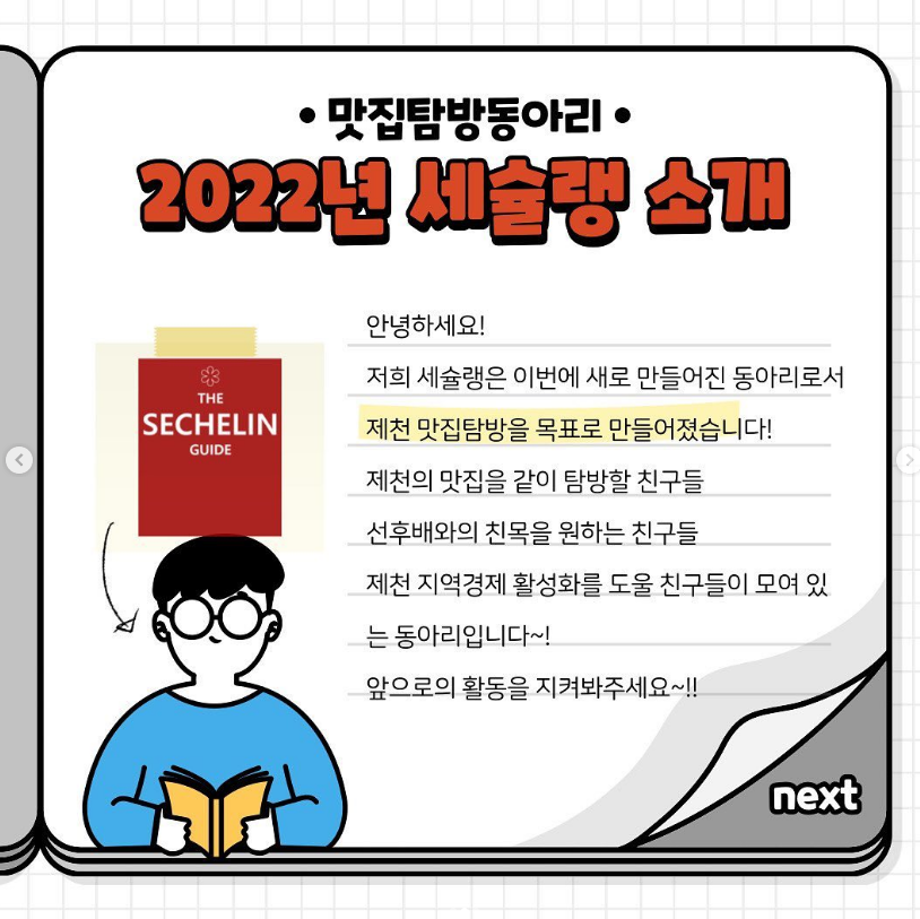 본문 시작 홈으로 커뮤니티 학과소개 진로 및 취업 학과과정 커뮤니티 SNS 홈페이지가이드 학과 소식 및 행사 학과공지 학과 소식 및 행사 대학생활 엿보기 어쩌다 출근 챌린지 학생회 동아리 통학버스 시간표 학과 소식 및 행사 페이스북 트위터 프린트 동아리 소개[세슐랭] 작업치료학과 4533 2022-10-17 목록 이전동아리 소개[브레인] 다음 2022-2학기 중간고사 담당부서 : 작업치료학과 담당자 : - 연락처 : 043-649-1632 최종수정일 : 2024-10-26 만족도조사 만족도 조사 이 페이지에서 제공하는 정보에 대하여 만족하시나요? 매우만족 만족 보통 불만족 매우불만족