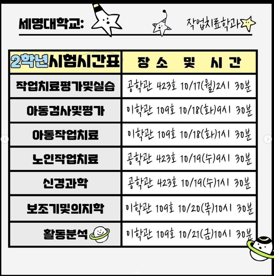 본문 시작 홈으로 커뮤니티 학과소개 진로 및 취업 학과과정 커뮤니티 SNS 홈페이지가이드 학과 소식 및 행사 학과공지 학과 소식 및 행사 대학생활 엿보기 어쩌다 출근 챌린지 학생회 동아리 통학버스 시간표 학과 소식 및 행사 페이스북 트위터 프린트 2022-2학기 중간고사 작업치료학과 4617 2022-10-17 목록 이전동아리 소개[세슐랭] 다음 동아리 소개 [9988] 담당부서 : 작업치료학과 담당자 : - 연락처 : 043-649-1632 최종수정일 : 2024-10-26 만족도조사 만족도 조사 이 페이지에서 제공하는 정보에 대하여 만족하시나요? 매우만족 만족 보통 불만족 매우불만족