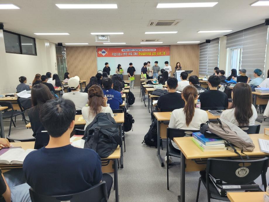 핵심실무역량 강화 프로그램은 보건계열 전문인으로써 실무역량 증진을 위한 프로그램으로 세명대학교 작업치료학과 4학년 학생들을 대상으로 매년 실시하고 있습니다. 올해도 마찬가지로 4학년 학생들을 대상으로 하여 핵심실무역량 강화 프로그램을 실시하여 학생들의 실무역량에 도움을 주는 시간이 되었습니다. 코로나 에 대비하여 학생들의 건강 및 안전을 지킬수 있도록 모든 안전규정을 준수하여 프로그램을 진행하였습니다.