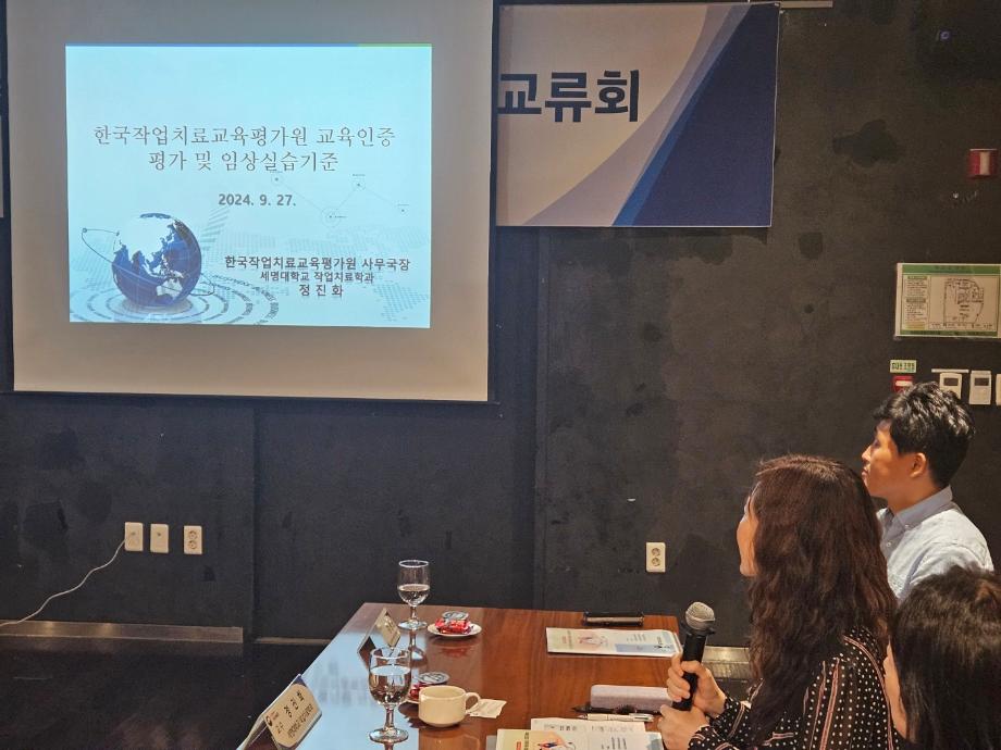 세명대학교 작업치료학과 정진화교수는 지난 9월 27일 아리랑힐 호텔 동대문 연회장에서 진행된 “국립재활원 2024년 임상실습 성과교류회”에 전문가 강사로 초빙되어 작업치료학과 의료기사 등에 관한 법률개정(현장실습 이수 의무화)에 대한 주제로 강의를 진행하였다. 정진화교수는 현재 한국작업치료교육평가원 사무국장으로 활동하고 있으며, 2017년부터 평가원 인증평가 심사위원과 운영위원을 겸하고 있다. 이번 성과교류회에는 평가원을 대표하여 참석하였다.