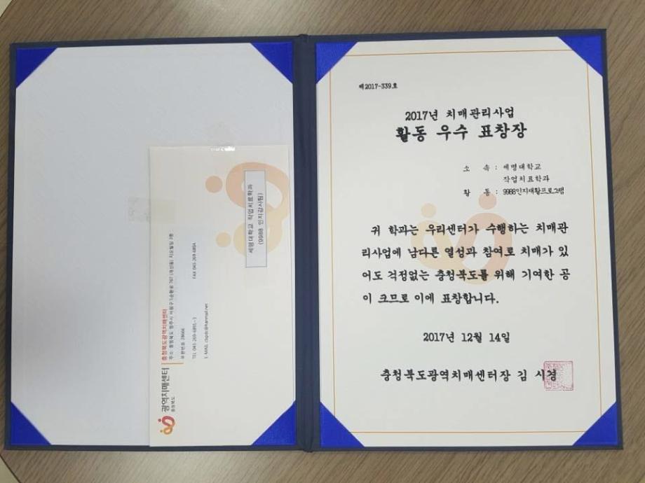 2017년12월14일 목요일 청주 미래여성 플라자에서 2017년 치매관리 사업 발전대회가 개최되었습니다.