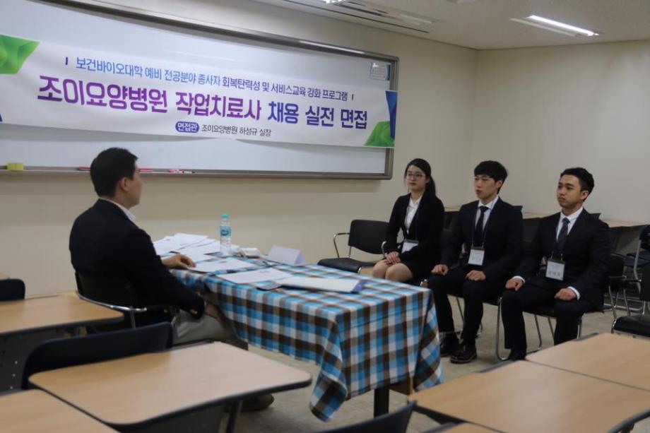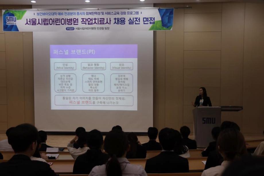 세명대 작업치료학과 병원 취업대비 실전 모의 면접이5월 19일 (토)요일 4학년 대상으로 진행되었고, 3학년 학우분들도 참관하였습니다. 면접특강 및 이미지메이킹 강의를 듣고난 후