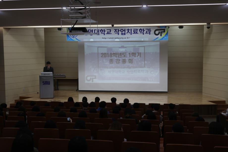 2018.5.28 1학기 종강총회가 세명대 학술관에서 진행되었습니다. 이번 종강총회에서는 학회장선배가 1학기동안 진행되었던 행사를 발표하셨고, 각 동아리의 부원들도 한학기동안 활동했던 것을 발표하는 시간을 가졌습니다. 마지막으로 학과장교수님께서 각 학년별로 잘해냈으면 좋겠다는 격려의 말씀을 해주셨습니다
