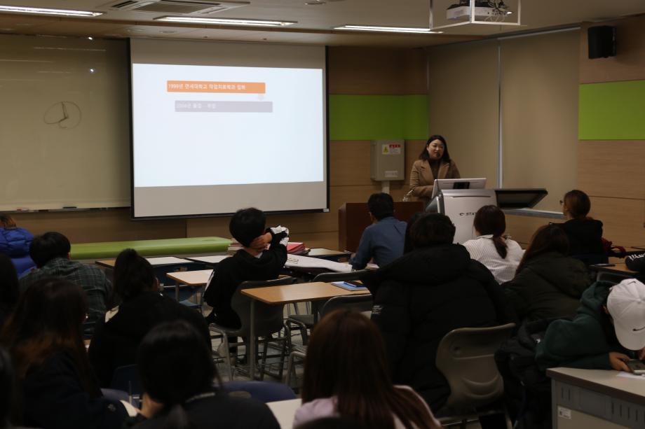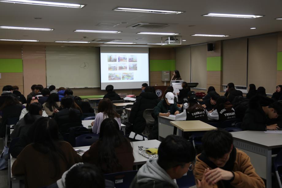 본문 시작 홈으로 커뮤니티 학과소개 진로 및 취업 학과과정 커뮤니티 SNS 홈페이지가이드 학과 소식 및 행사 학과공지 학과 소식 및 행사 대학생활 엿보기 어쩌다 출근 챌린지 학생회 동아리 통학버스 시간표 학과 소식 및 행사 페이스북 트위터 프린트 2018학년도 2차 학술특강 작업치료학과 6997 2018-11-07 11월 7일 1학년 재학생들을 대상으로 2차 학술특강이 진행 되었습니다. '작업치료사의 역량과 아동작업치료의 이해' 라는 주제로 황선미 원장님께서 특강하셨습니다. 학생들이 전공에 대한 이해화 궁극적인 취업에 있어서 본인들이 갖추어야 할 역량과 그 입지를 확인하여 전문 작업치료사의 초석을 다지는 좋은 시간이였습니다. 목록 이전2018 국가고시 합격 응원 행사 다음 2018-2학기 종강총회 담당부서 : 작업치료학과 담당자 : - 연락처 : 043-649-1632 최종수정일 : 2024-10-26 만족도조사 만족도 조사 이 페이지에서 제공하는 정보에 대하여 만족하시나요? 매우만족 만족 보통 불만족 매우불만족