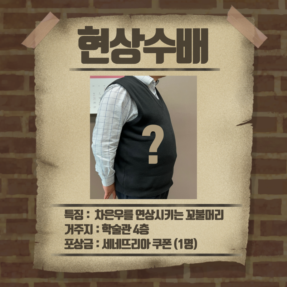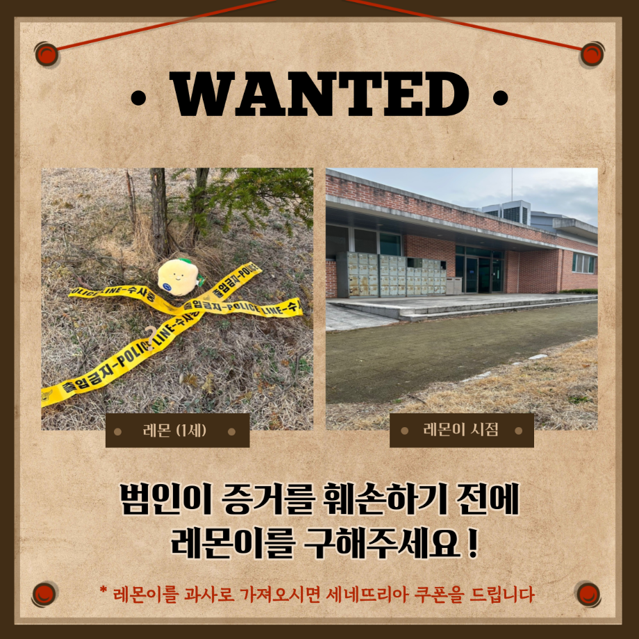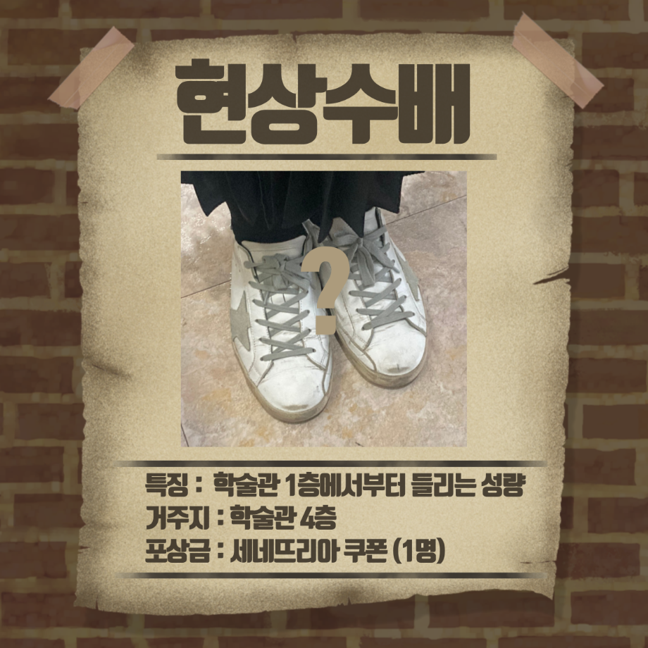 본문 시작 홈으로 커뮤니티 학과소개 교수소개 학과과정 커뮤니티 홈페이지가이드 포토갤러리 학부공지 학과일정 포토갤러리 학생회 동아리 포토갤러리 페이스북 트위터 프린트 1,2학년 3월 게릴라 이벤트 진행 경찰학과 3245 2023-03-27 3월 27일 월요일 12시부터 경찰학과 1, 2학년 학생들을 대상으로 게릴라 이벤트를 진행하였습니다. 게릴라 이벤트 내용은 "레몬이를 살해한 범인과 살해된 레몬이를 찾아주세요" 였습니다. 현상수배 전단지를 인스타 게시물을 통해 확인하신 후 범인을 찾아 인증샷을 찍어 오거나 범인에게 살해당한 레몬이를 찾아 과사무실로 가져오시는 분께 포상금을 제공하는 활동을 하였습니다. 목록 이전2023학년도 경찰학과 학생회 소개 영상 다음 3,4학년 3월 게릴라 이벤트 진행 만족도조사 만족도 조사 이 페이지에서 제공하는 정보에 대하여 만족하시나요? 매우만족 만족 보통 불만족 매우불만족