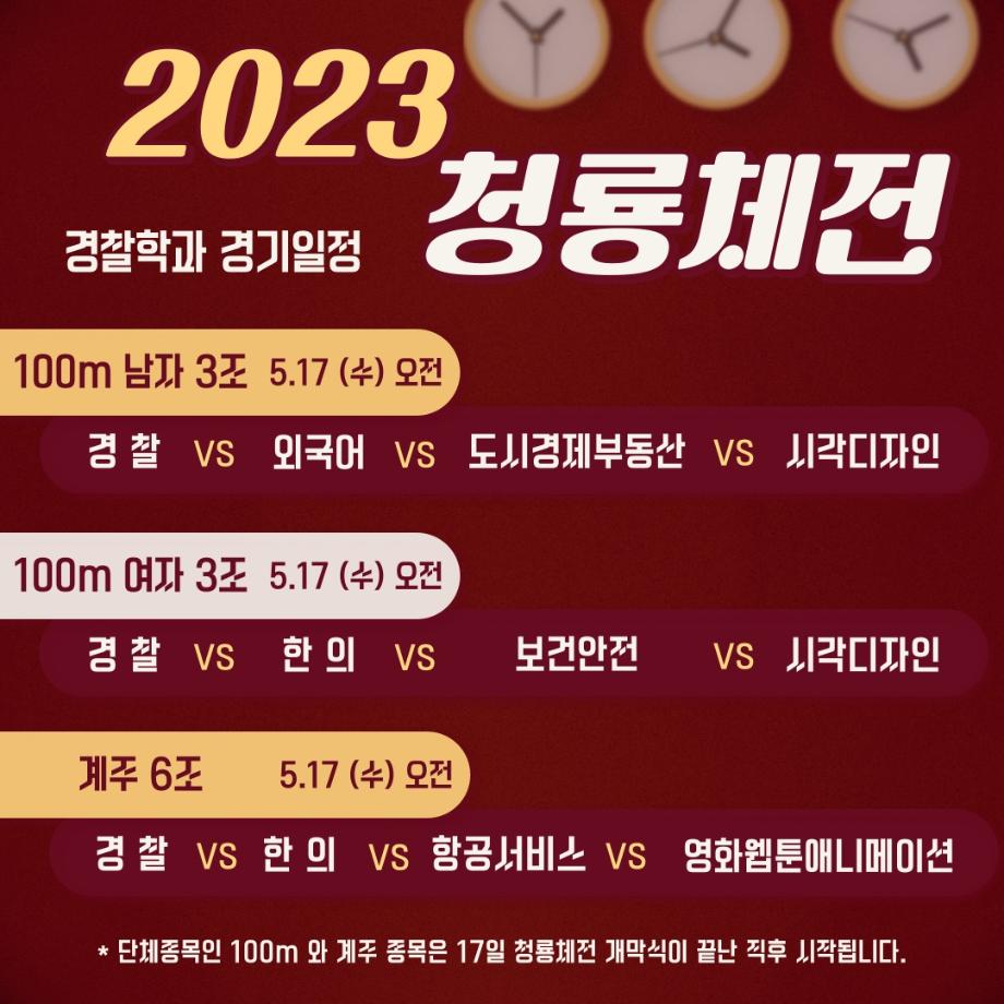 본문 시작 홈으로 커뮤니티 학과소개 교수소개 학과과정 커뮤니티 홈페이지가이드 포토갤러리 학부공지 학과일정 포토갤러리 학생회 동아리 포토갤러리 페이스북 트위터 프린트 2023 청룡체전 안내 경찰학과 3933 2023-05-14 5월 17일부터 19일은 청룡체전 기간입니다 ! 4년만에 대면으로 이루어지는 청룡체전인만큼 경기에 출전하는 체전선수들에게 많은 관심과 응원 부탁드립니다! 목록 이전2023년 4월 사진공보전 이벤트 당첨자 발표 다음 2023년 5월 사진공모전 이벤트 안내 만족도조사 만족도 조사 이 페이지에서 제공하는 정보에 대하여 만족하시나요? 매우만족 만족 보통 불만족 매우불만족