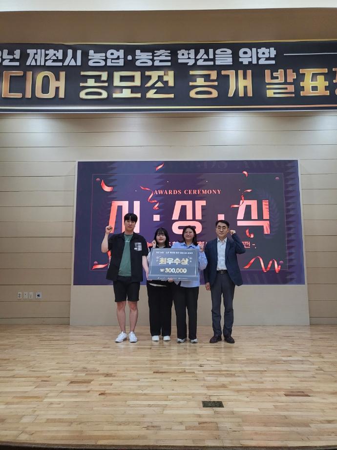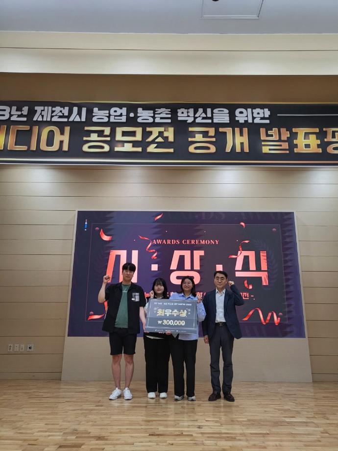 본문 시작 홈으로 커뮤니티 학과소개 학생진로 교과과정 커뮤니티 학과 SNS 홈페이지가이드 학과 갤러리 공지사항 대학원 학과 갤러리 학과 이야기 동아리 학생회 학과 갤러리 페이스북 트위터 프린트 2023학년도 아이디어 공모전 시상식 경영학과 3883 2023-06-13 안녕하세요, 세명대학교 경영학과입니다. 지난 5월 17일, 제천시 농촌협약지원센터에서 주최하는 제천시 농업, 농촌 혁신을 위한 아이디어 공모전에서 경영학과 이규빈, 안성훈, 윤예원, 한아름 학생이 최우수상을 수상하였습니다! 목록 이전2023년 청룡체전 경영학과 농구 1위 ! 다음 2023년 세명대학교 교직원 연수회 담당부서 : 경영학과 담당자 : - 연락처 : 043-649-1766 최종수정일 : 2024-10-26 만족도조사 만족도 조사 이 페이지에서 제공하는 정보에 대하여 만족하시나요? 매우만족 만족 보통 불만족 매우불만족